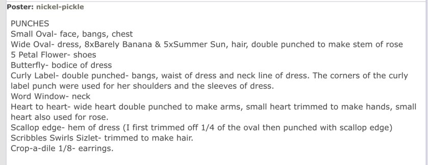 Today I have another one of my faceless princess punch art cards. She is another character that I shared on Splitcoast Stampers a few years back and can be found there under the username nickel-pickle https://www.splitcoaststampers.com/gallery/photo/1638113 she has also been posted on Pinterest through SCS