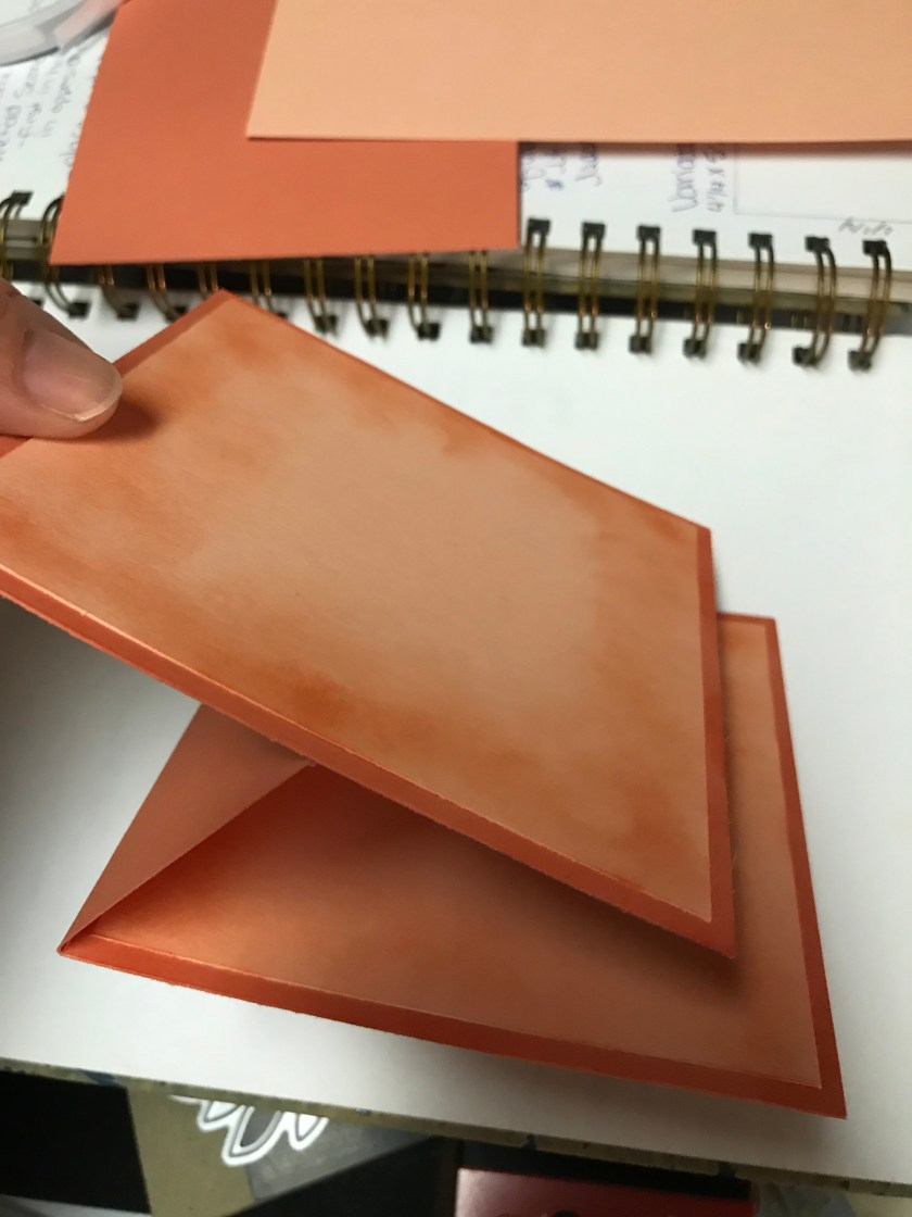 Next, I cut out 2 pieces of 4″ x 4″ in the Crisp Cantaloupe, I used Calypso Coral ink and I sponged the edges of both squares.