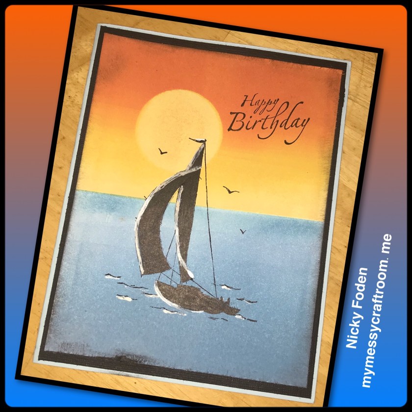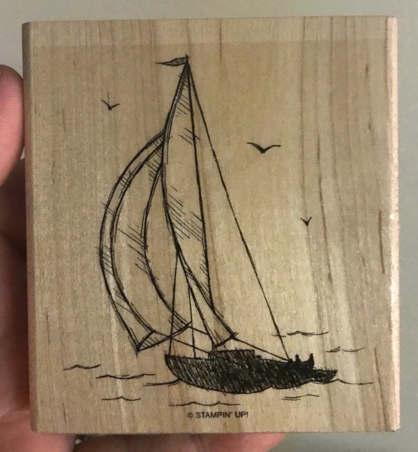 Next comes the stamping 😀, I stamped the sailboat with this line stamp using Basic Black ink.