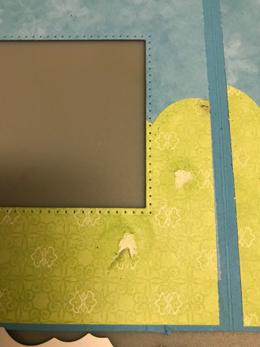 So I trimmed a little piece of the green paper to cover the gap.