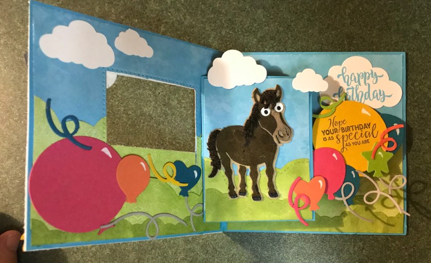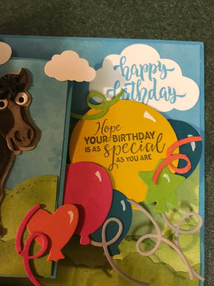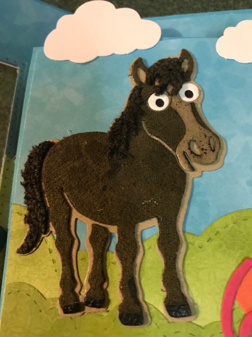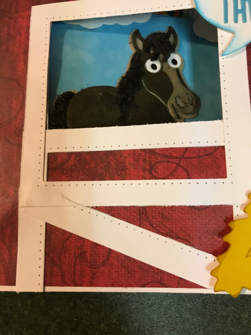 I have a fun birthday card today, my son’s friend asked if I could make a birthday card for his sister, his request was, could it have a horse, possibly a barn, and some kind of pop up/fun feature, and I said “Hay ya” 😂