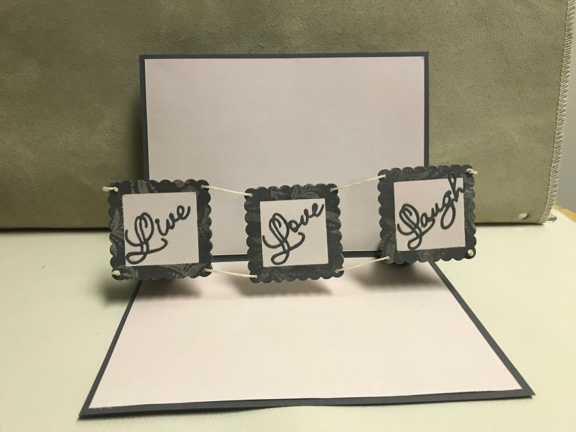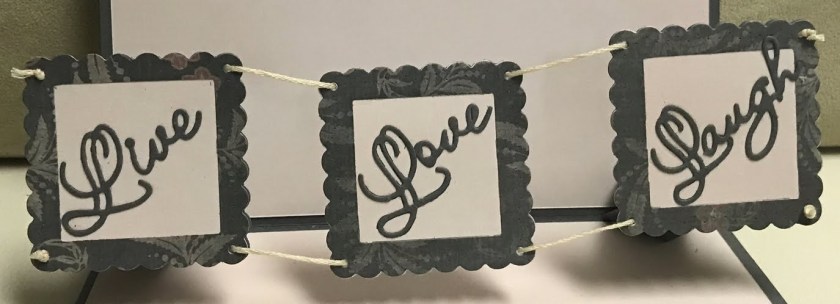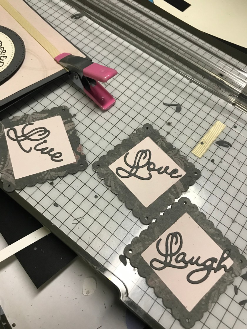 I had the words “Live Love Laugh” in my stash so I added them to the squares.