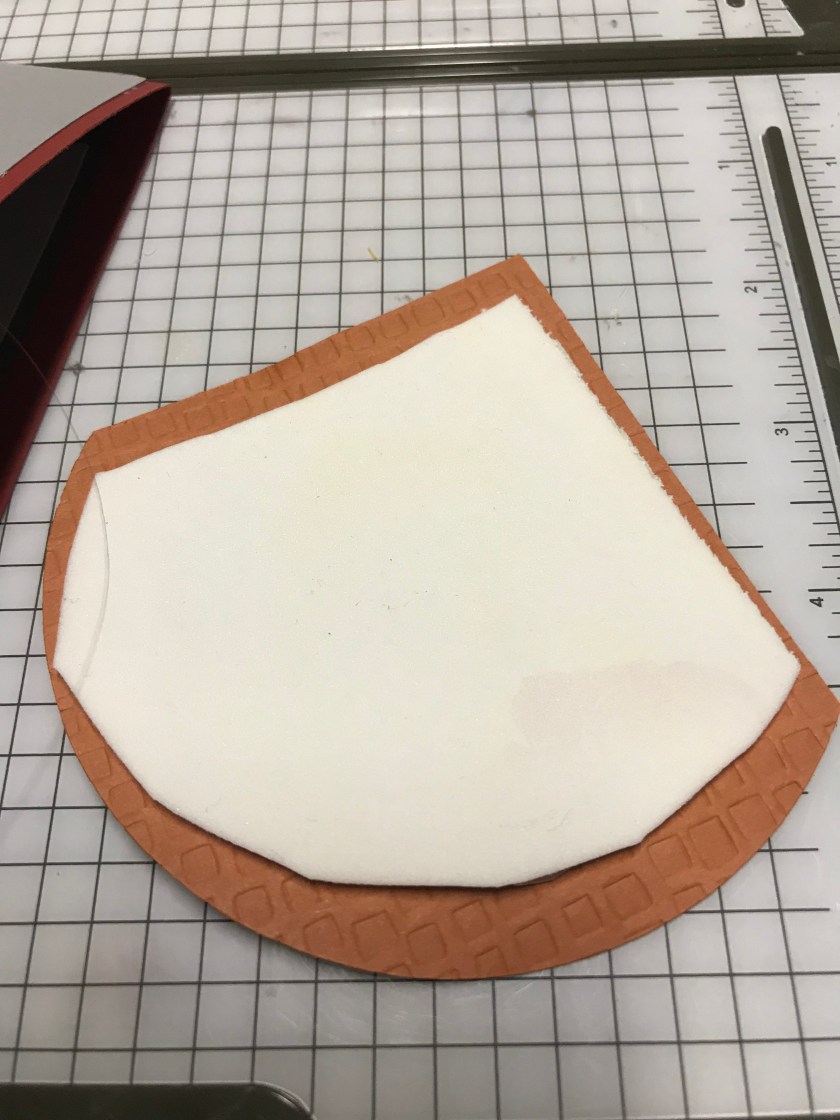 I used a 4 1/2″ circle die to cut a circle out of a corner of Really Rust cardstock