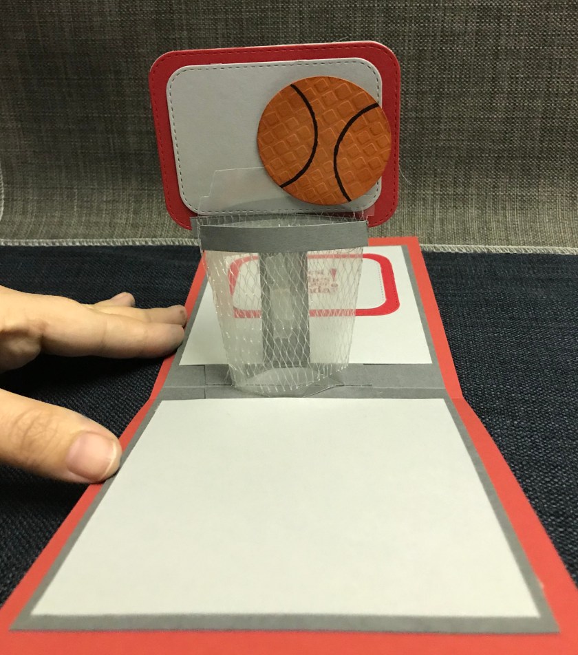 I attached the backboard to the back of the net and added a piece of grey cardstock up the back as a support.