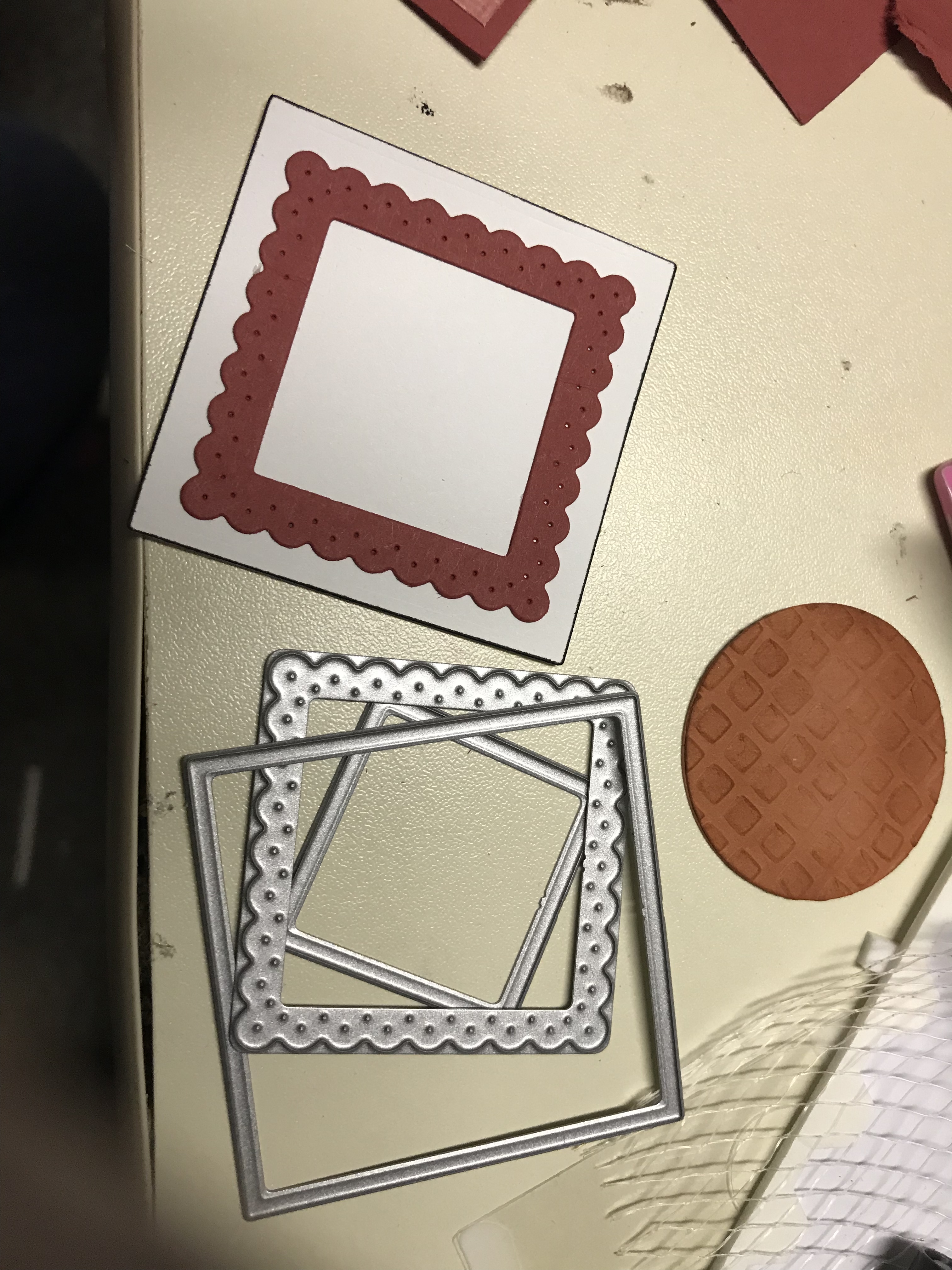 this next part took a little trial and error, I will do my best to omit the parts that didn’t work. I cut 2 pieces of acetate with the rectangle arm from the die set, I punched a small circle (roughly 1/2″) through both of them,