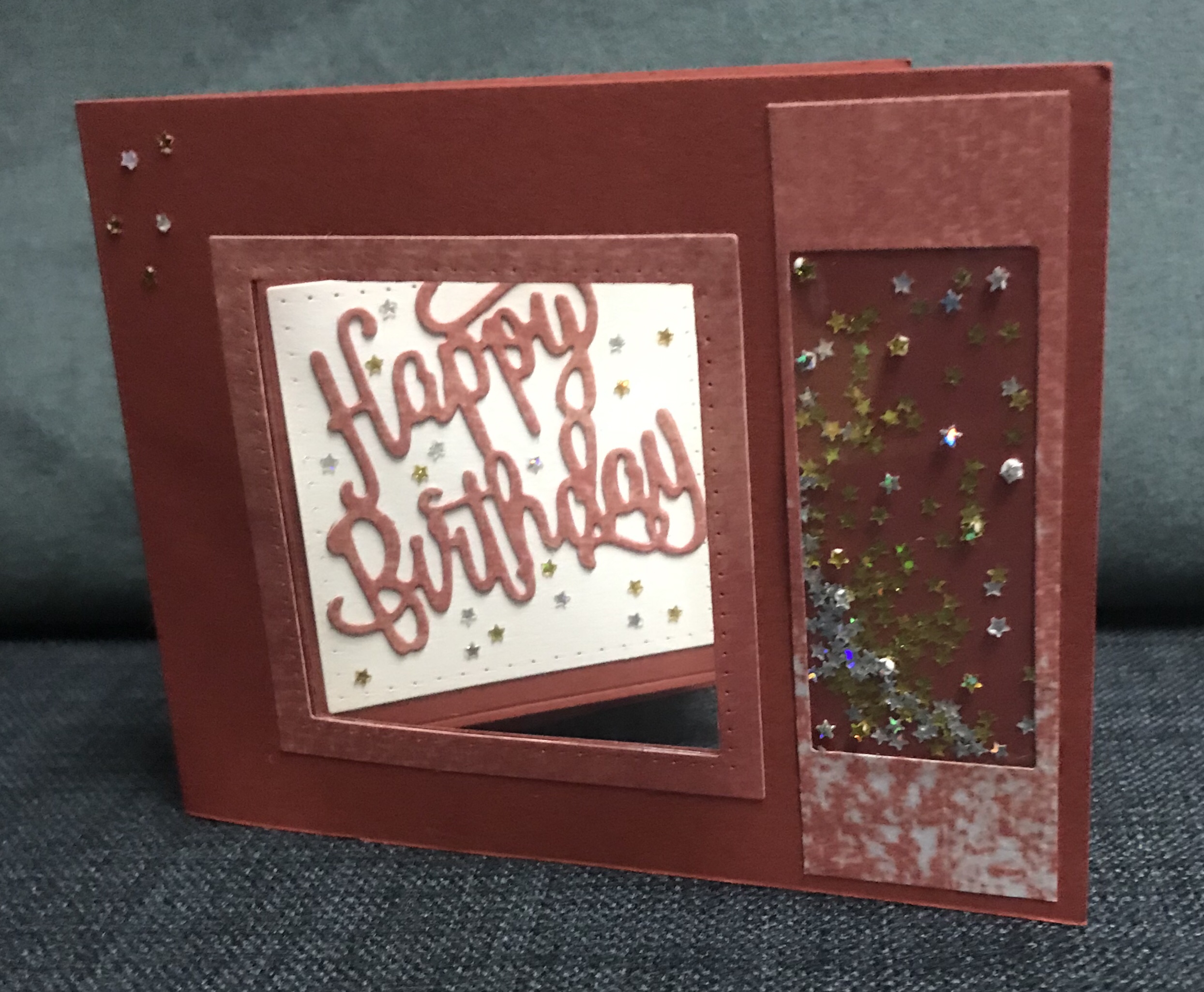 I braced the card as shown because the card does not sit flat enough to add the shaker element to the front otherwise.