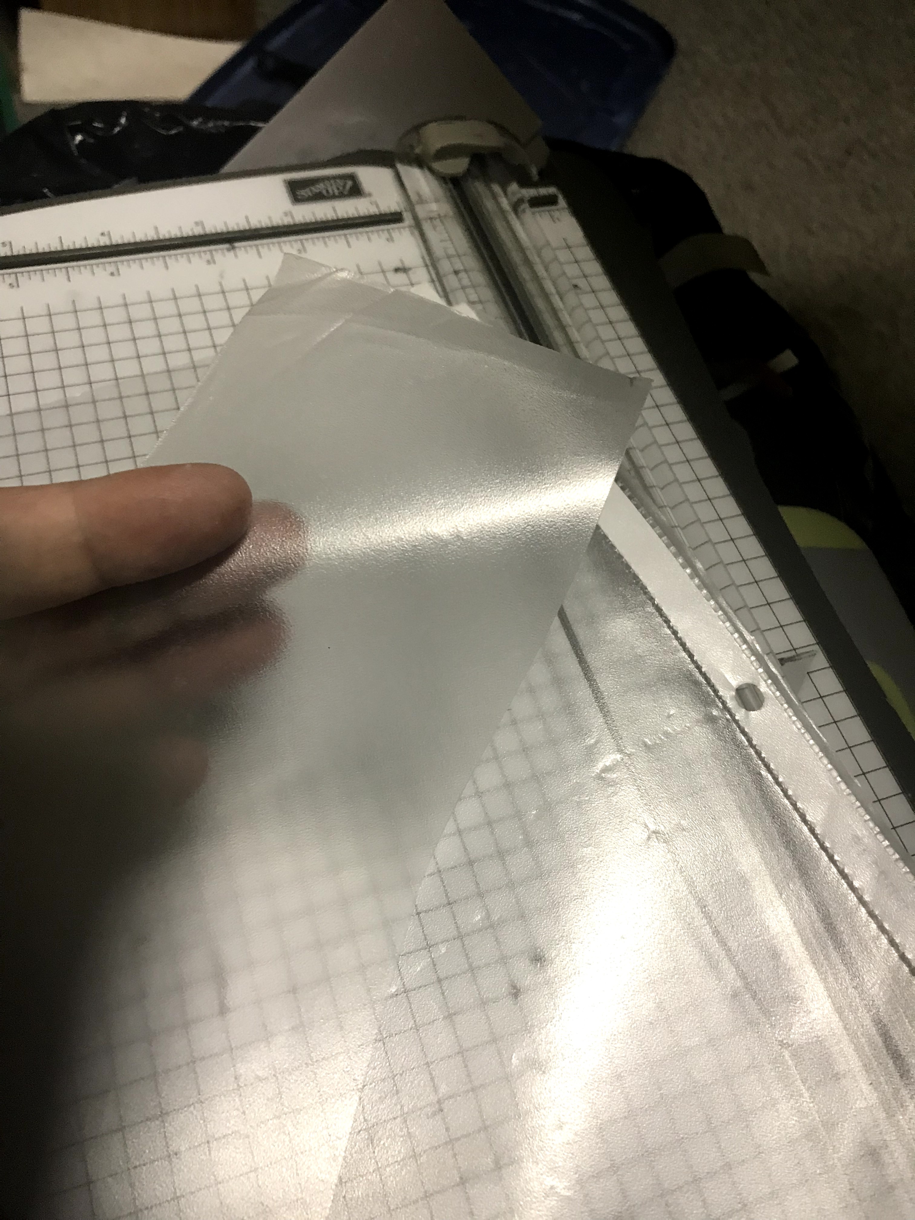 I cut an old page protector to be 3″ wide and kept it’s full length as I wasn’t sure how long I would need it to be.