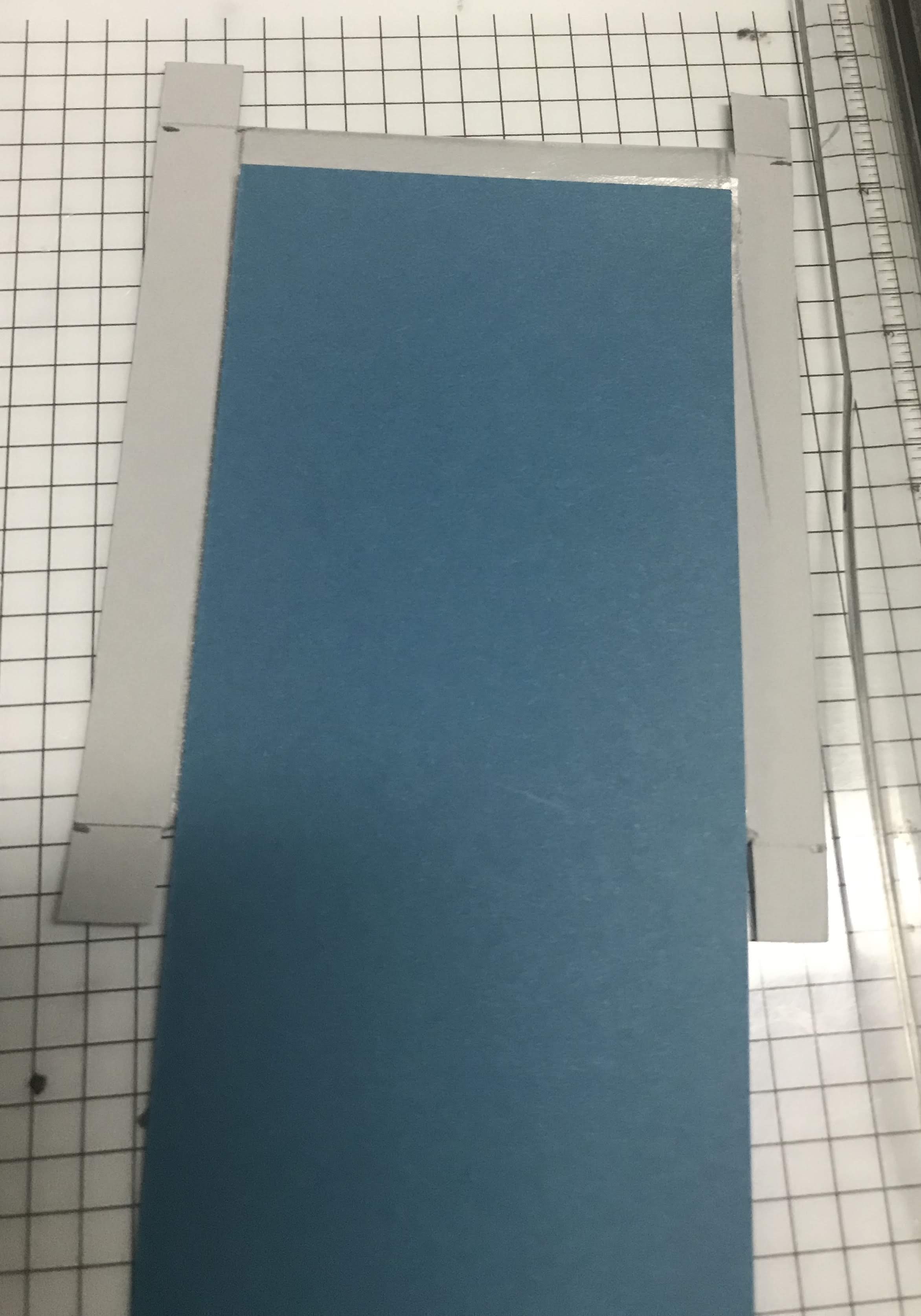 I cut a piece of grey cardstock to 4″ x 5 1/4″ and drew pencil lines 1/2″ up all four sides.