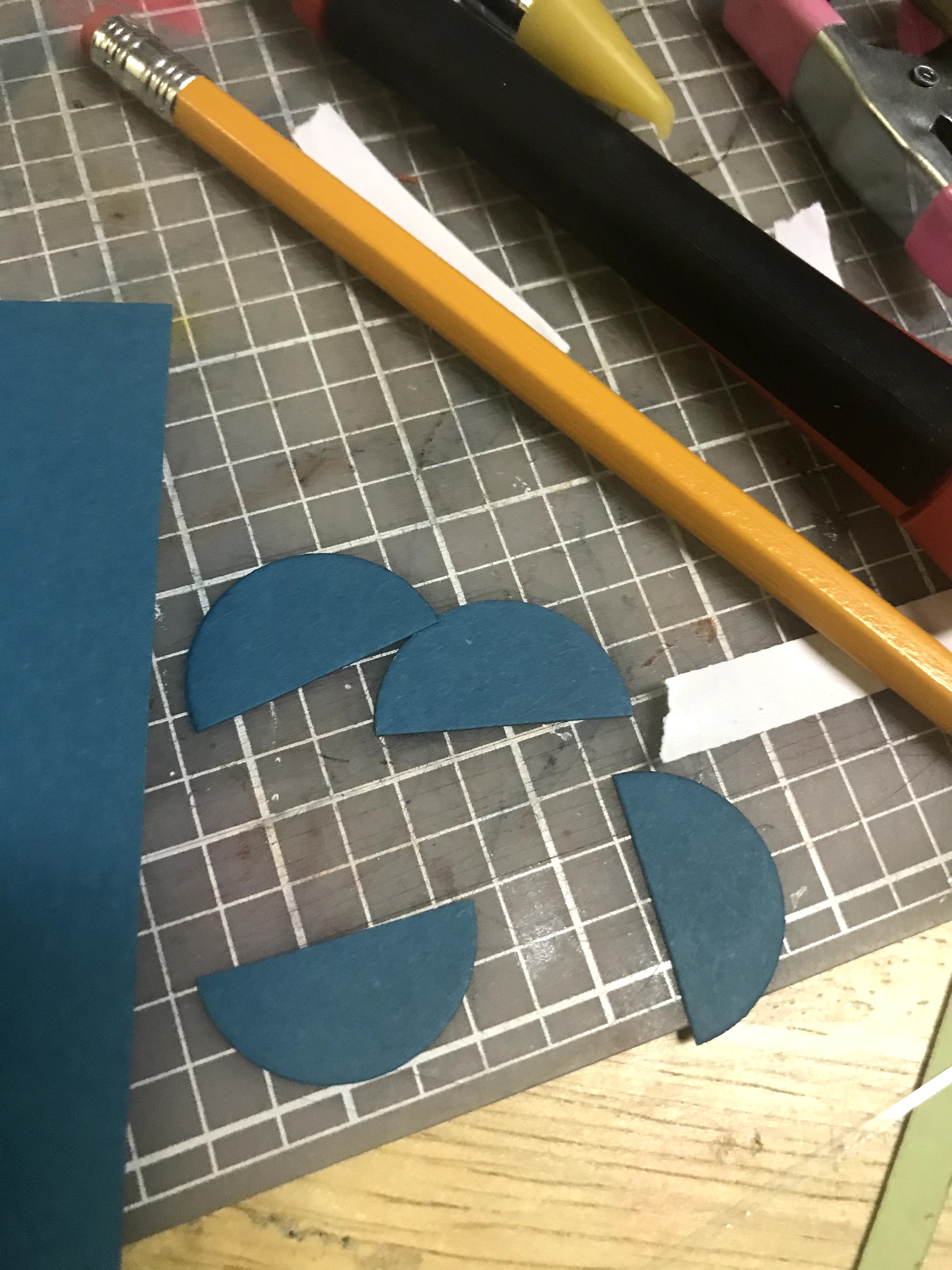 I cut out 4 half circles and adhered them one on top of eachother to make a stronger tab to pull on.