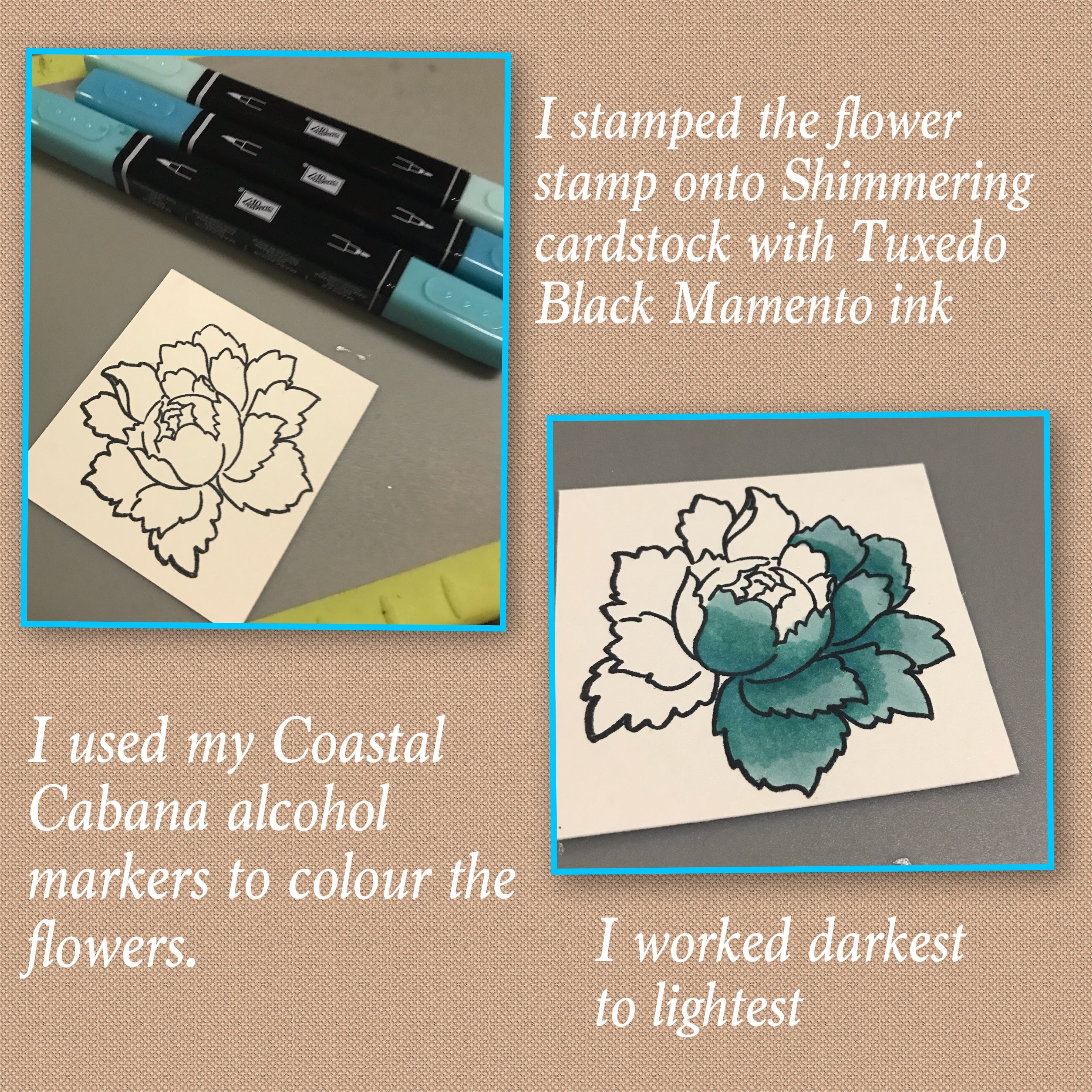 The stamp used is from Altenew and it is called Peony Bouquet. It is a layering stamp but I decided to colour it with alcohol markers.