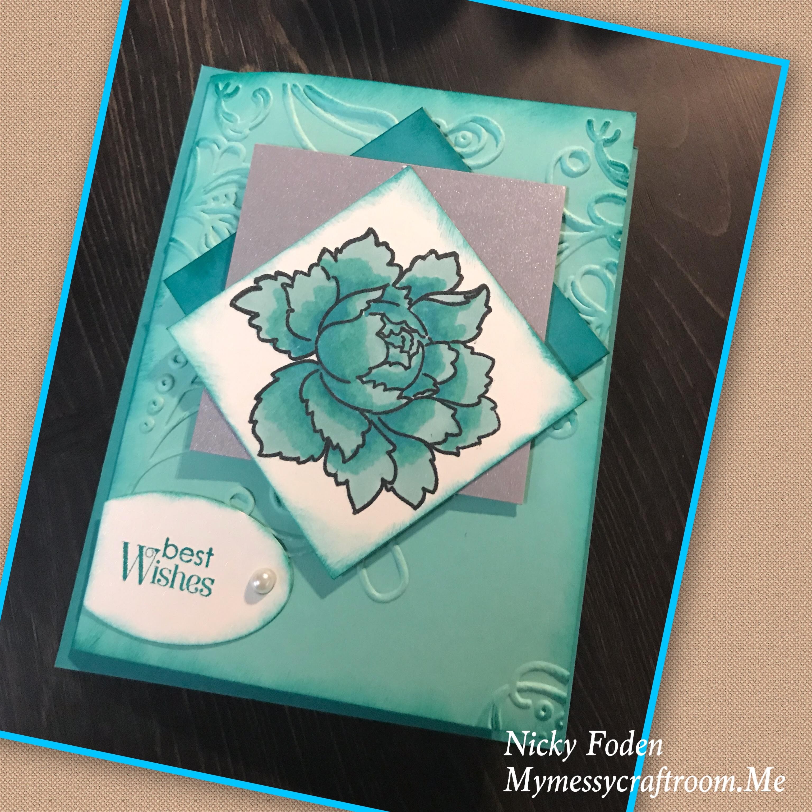 Happy Saturday, and today for the Crazy 4 Challenges challenge we have a design challenge. I needed to make a wedding card a few weeks back so I thought this design for this challenge would make a pretty card so I have been patiently waiting to post this card. I really love this colour combo, I actually had some of my supplies still sitting out after making this card so I used some of the same products to make last weeks Christmas in July card.