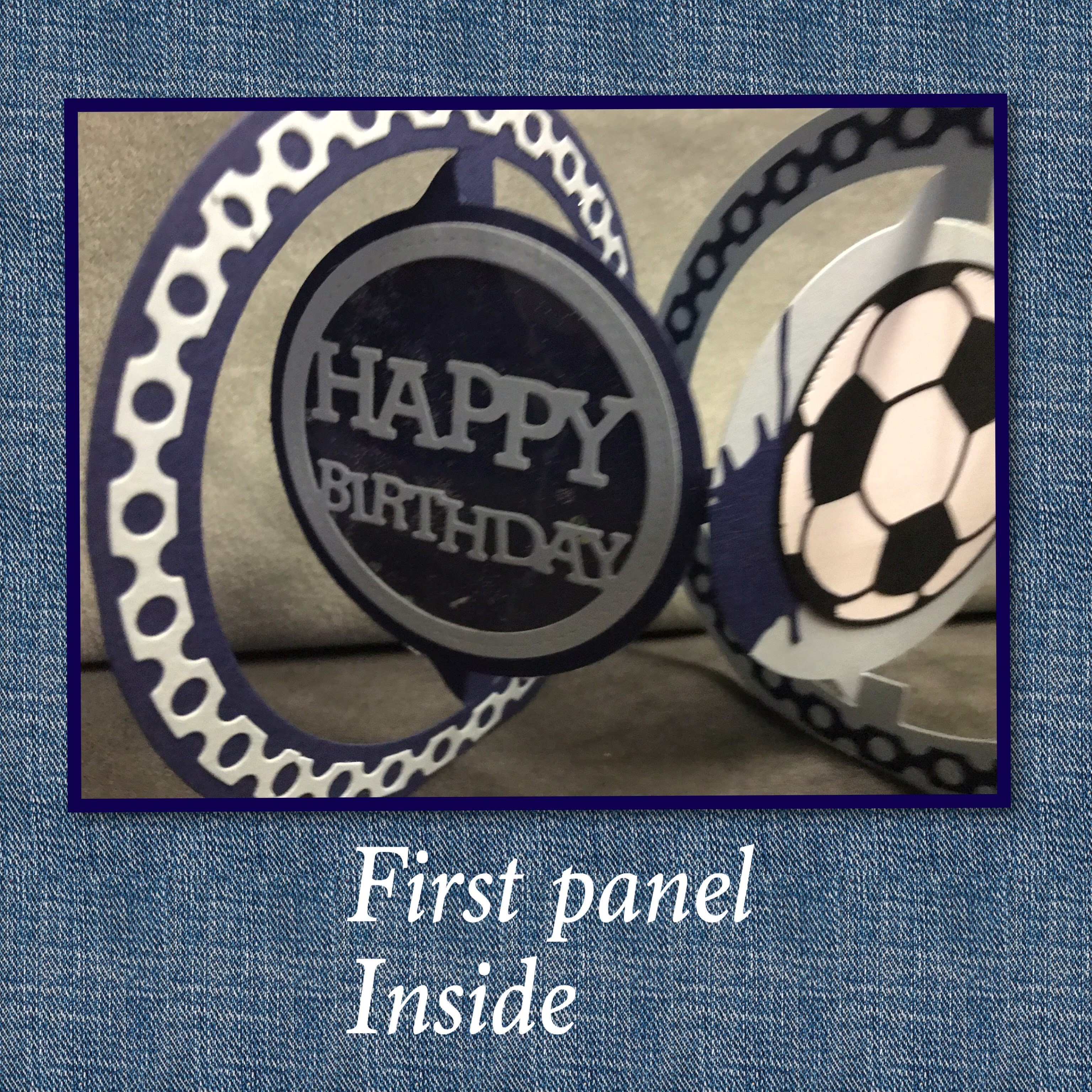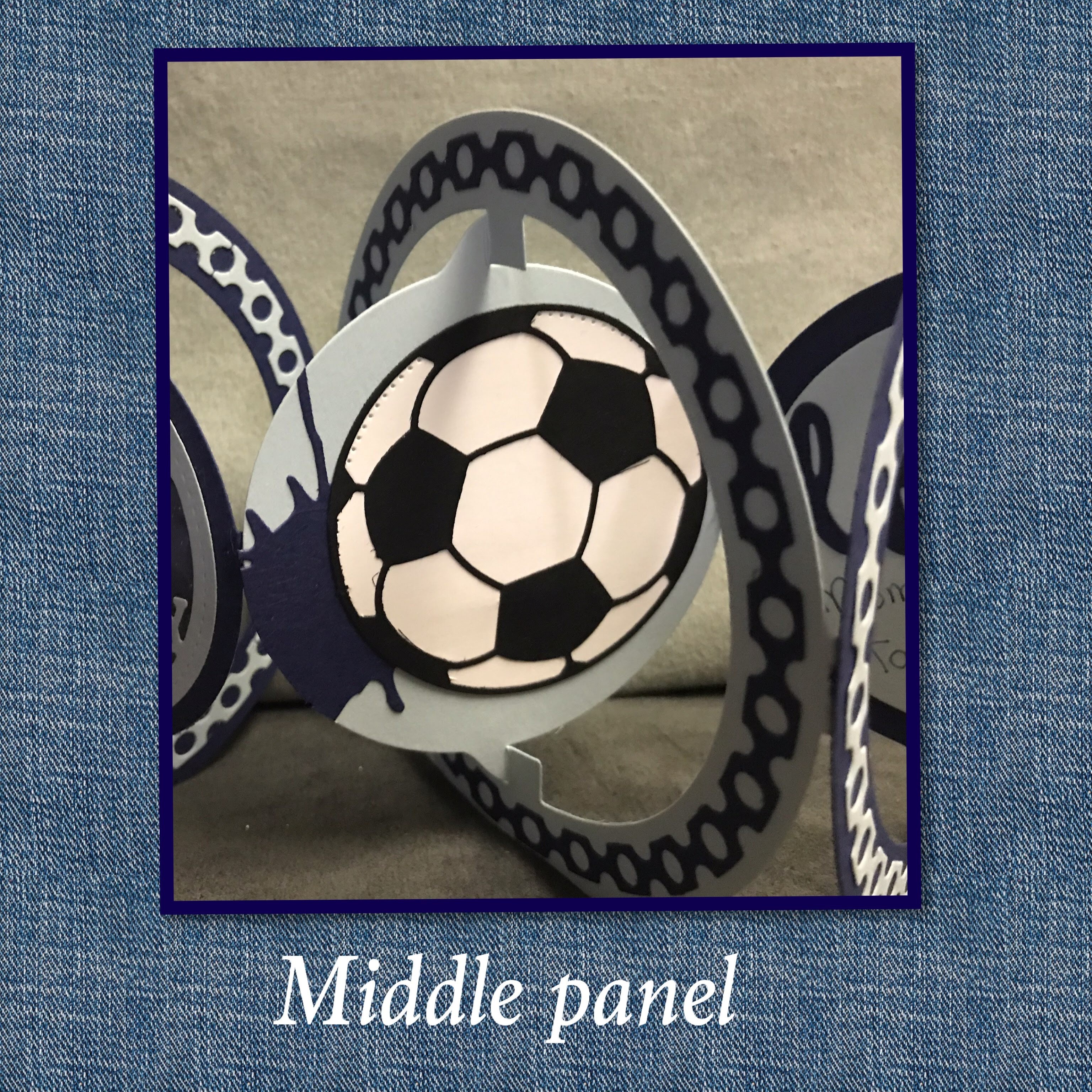 The middle panel has the the soccer ball āš½ļø my son loves soccer so I thought it would be a good choice. I am pretty sure I cut the soccer ball out with my Scan N Cut and the splotch was another thrift store find. The ring is also from the Frame edges set.