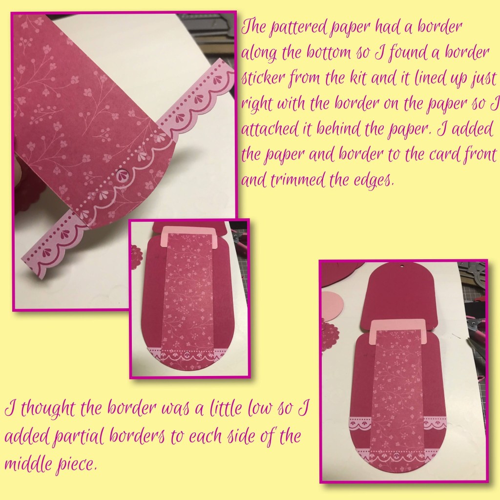 Ok, here we go. Originally I was going to make a monochromatic Pink card but as I got going I found it was too much so I added some yellow and a little bit of green.