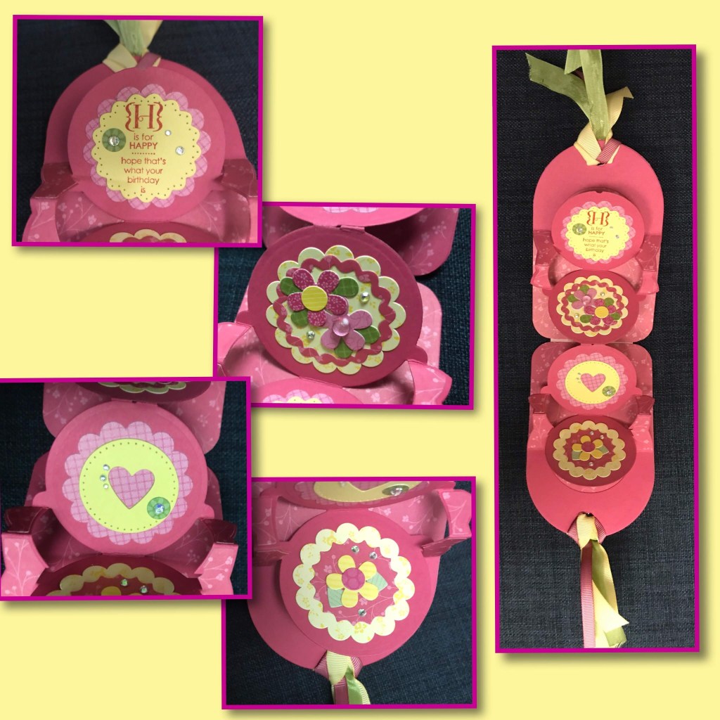 To make this card I used I used the Circle Tagbook Pop up from Karen Burniston. As always I recommend watching her tutorial video as it gives great details on how to assemble, it is at the bottom of the product page linked above