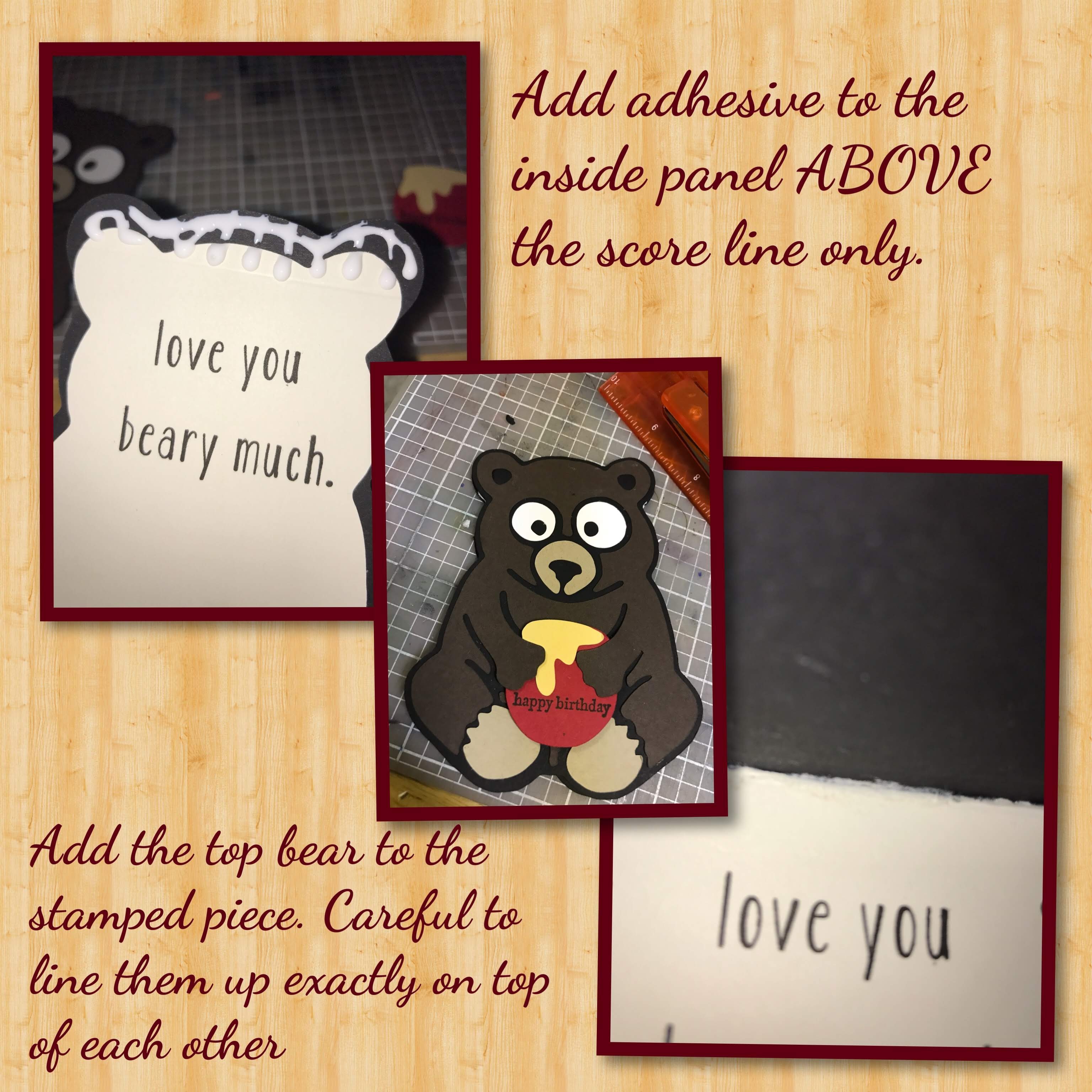 While looking for a different greeting I found the “Baby Bear” stamp set that had the “love you beary much” greeting which was perfect, I also used the “Teeny Tiny Wishes” stamp set, both from Stampin Up. I used my Stamping Platform to get proper placement of the stamped images.