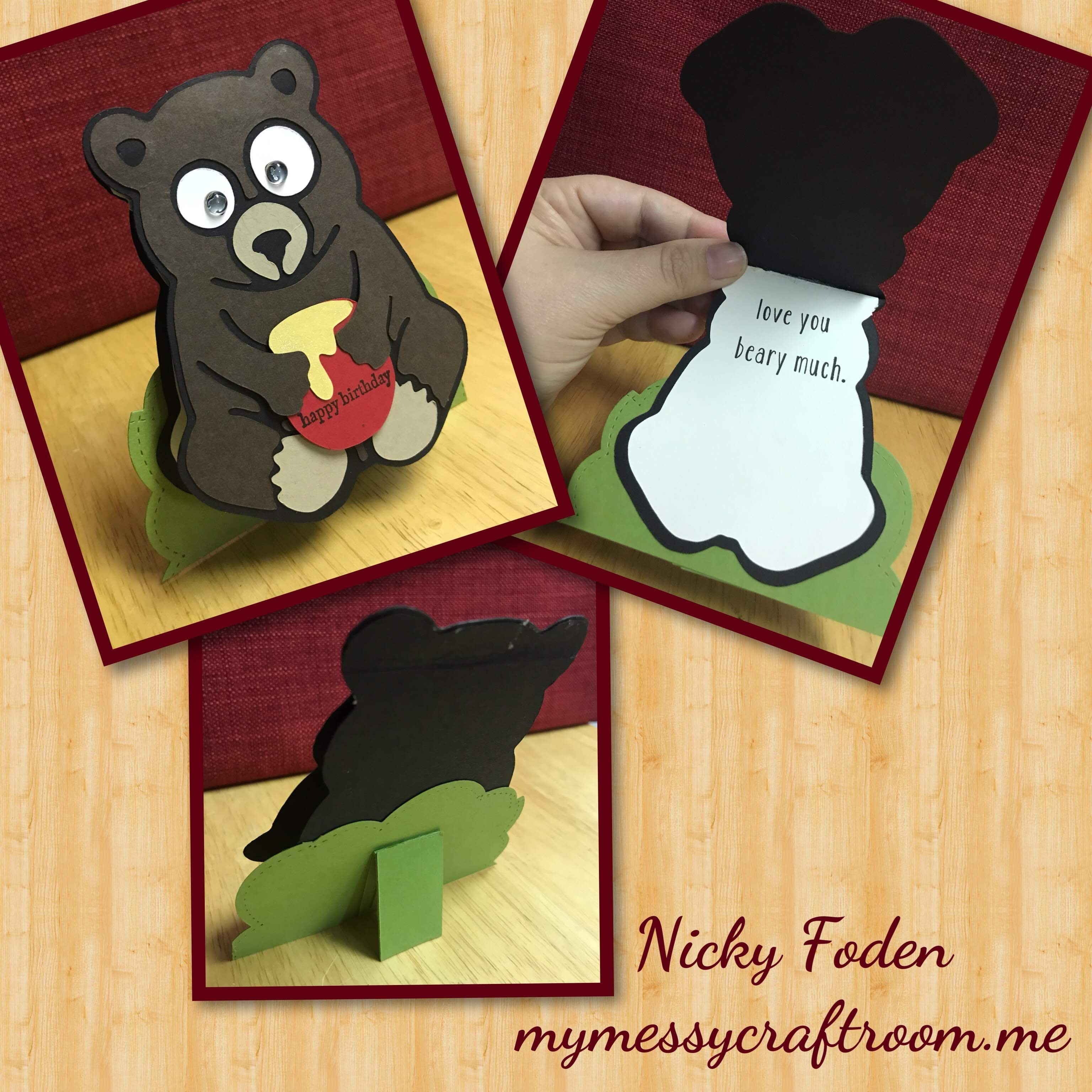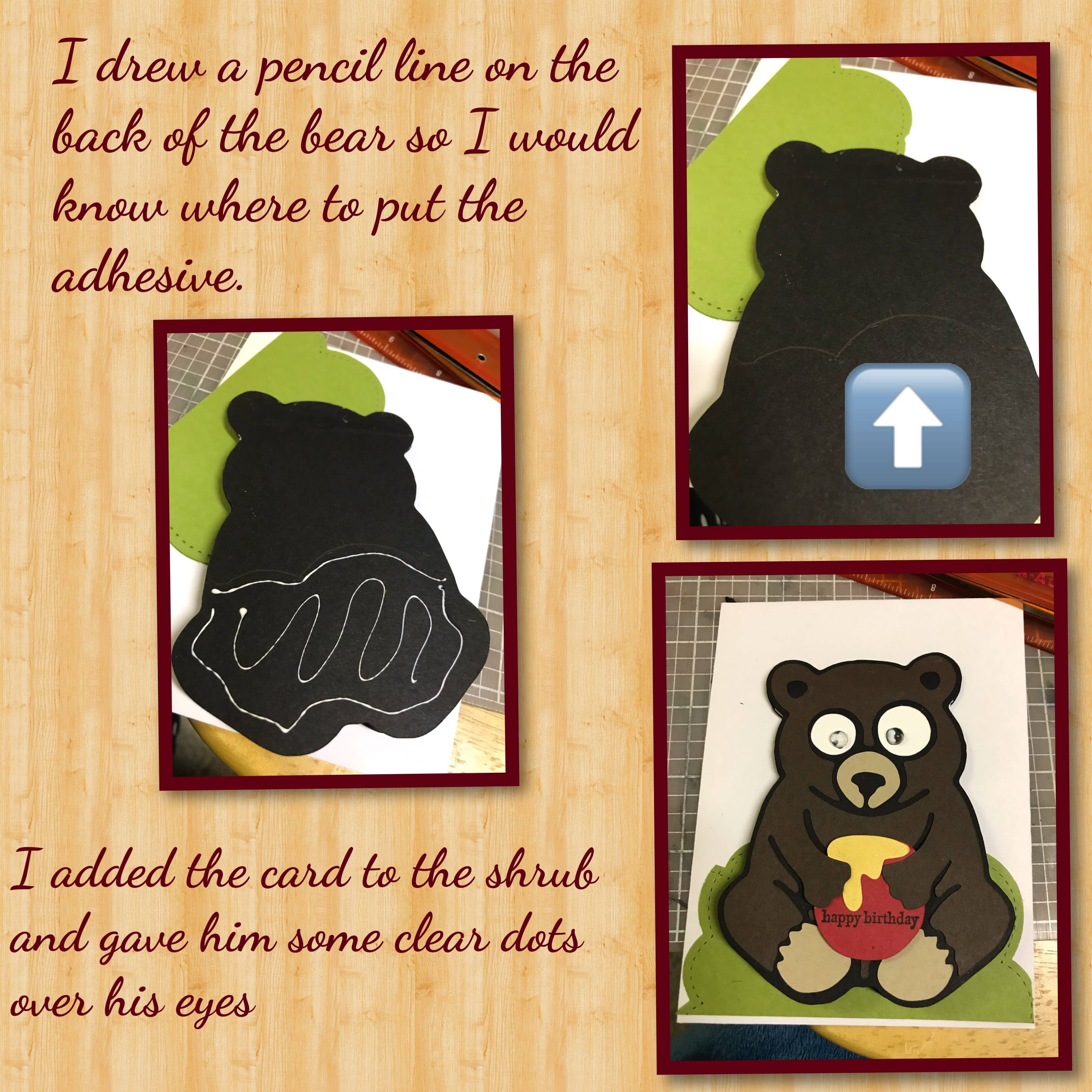 So when I started this card I really want to use Jinx the Monkey as the card base but I have been having issues with my Scan n Cut and I was having a hard time scanning in new images (I will have to try and update it) anyway I went into my prescanned saved images and I still had a images of Honey the Bear scanned from a previous project so that’s what I used.