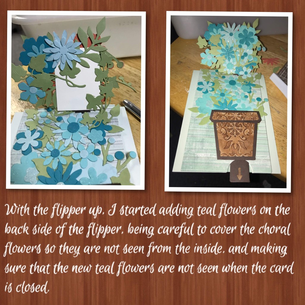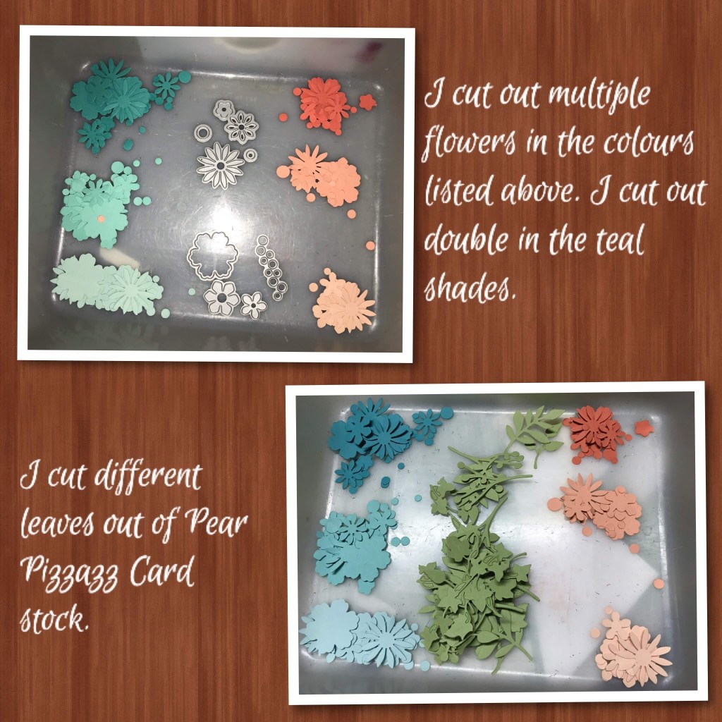 To make sure I layered the flowers so the different colours would only be visible when the card is either open or closed, I applied them in the following order…..