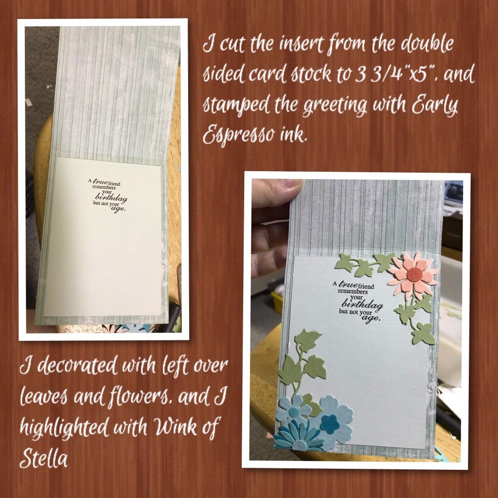 *I have been trying to think of a way to use the triple flip die set in a different way, then I saw Karen Aickens version where she only used one large flipper as opposed to using all three smaller flippers. Also one of my oldest and dearest friends had a birthday coming up and I decided she needed a fancy bouquet of flowers for her birthday, so I decided to combine the two. The effect I was looking for with this card was to have the card look like it is one colour of a bouquet when closed, but have a different colour of bouquet when it is open, and I think I pulled it off