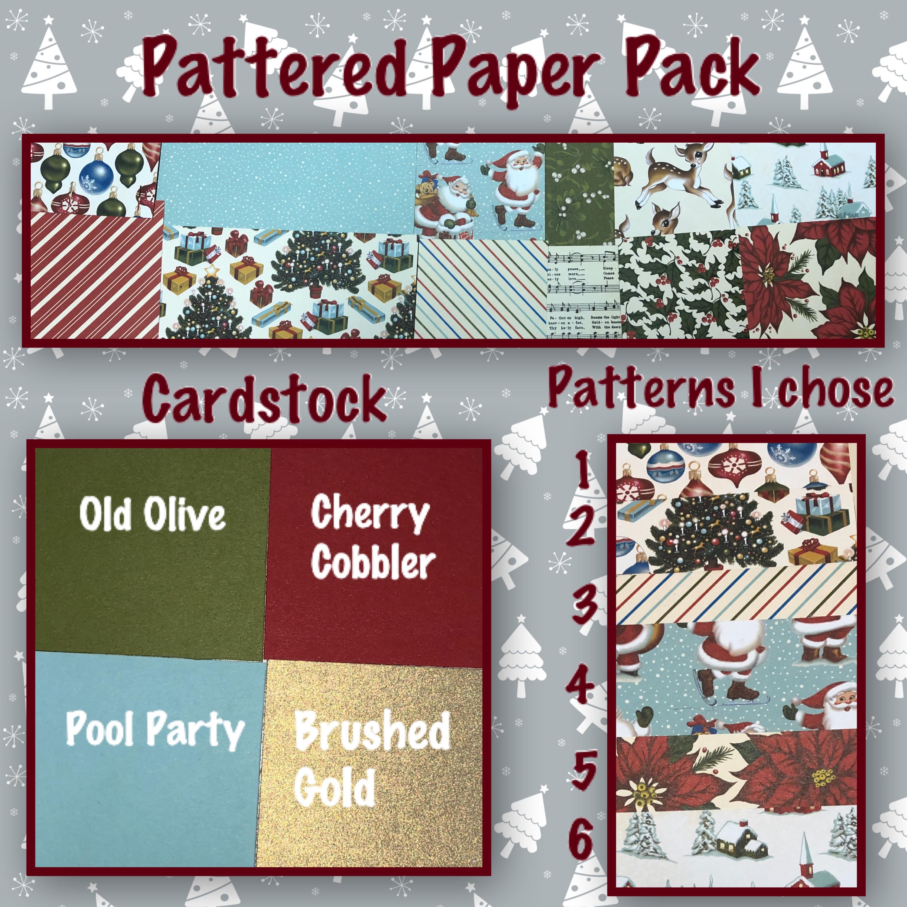 So today I have a couple of cute Christmas cards. I had the really adorable patterned paper out from a previous project asd I wasn’t quite ready to put it away. These cards I made to show that you can just go with it, There was really very little measuring as I was cutting out sections of the patterned paper that I liked and then just cutting out a mat roughly 1/4′ bigger. I also challenged myself to stick to 4 colours of cardstock to work with, I did cheat a little on that one as I also used Vanilla cardstock on the inside of 2 of them.