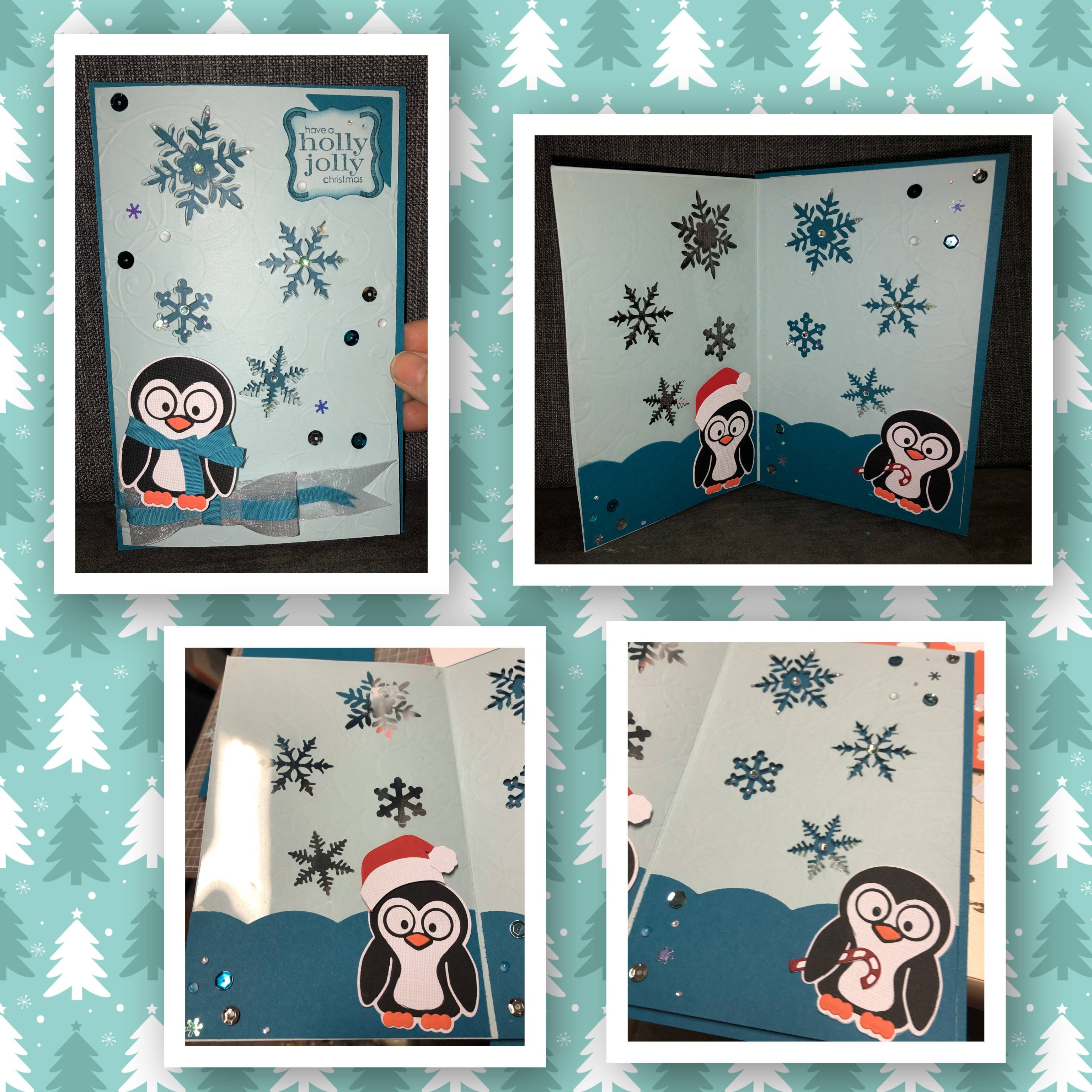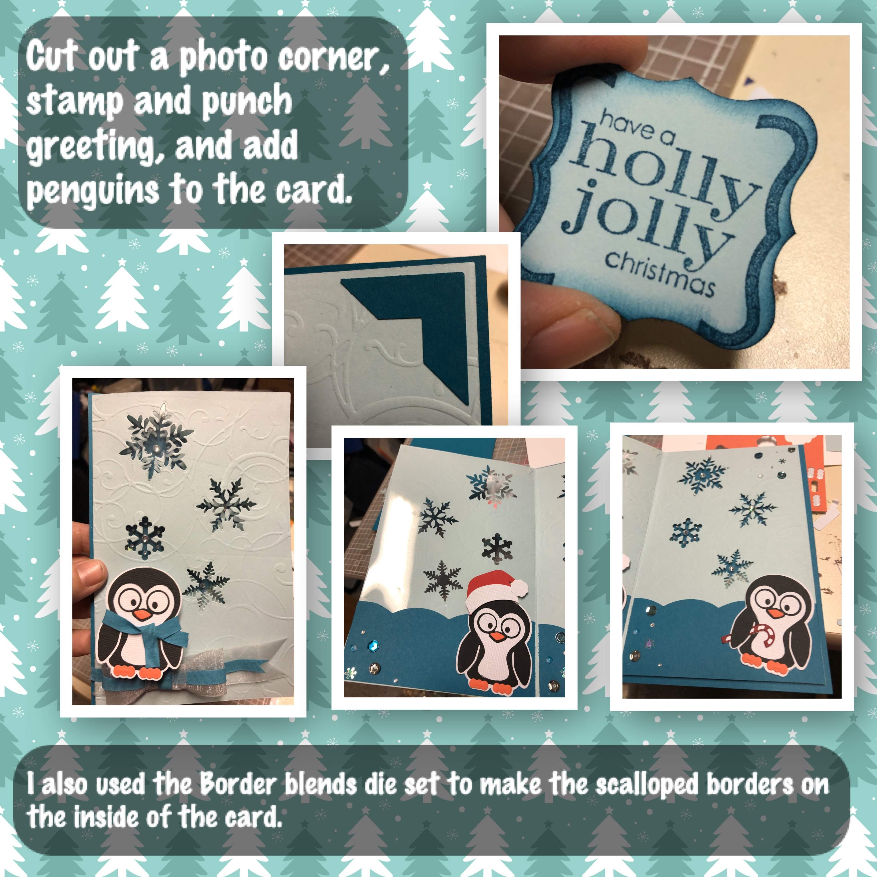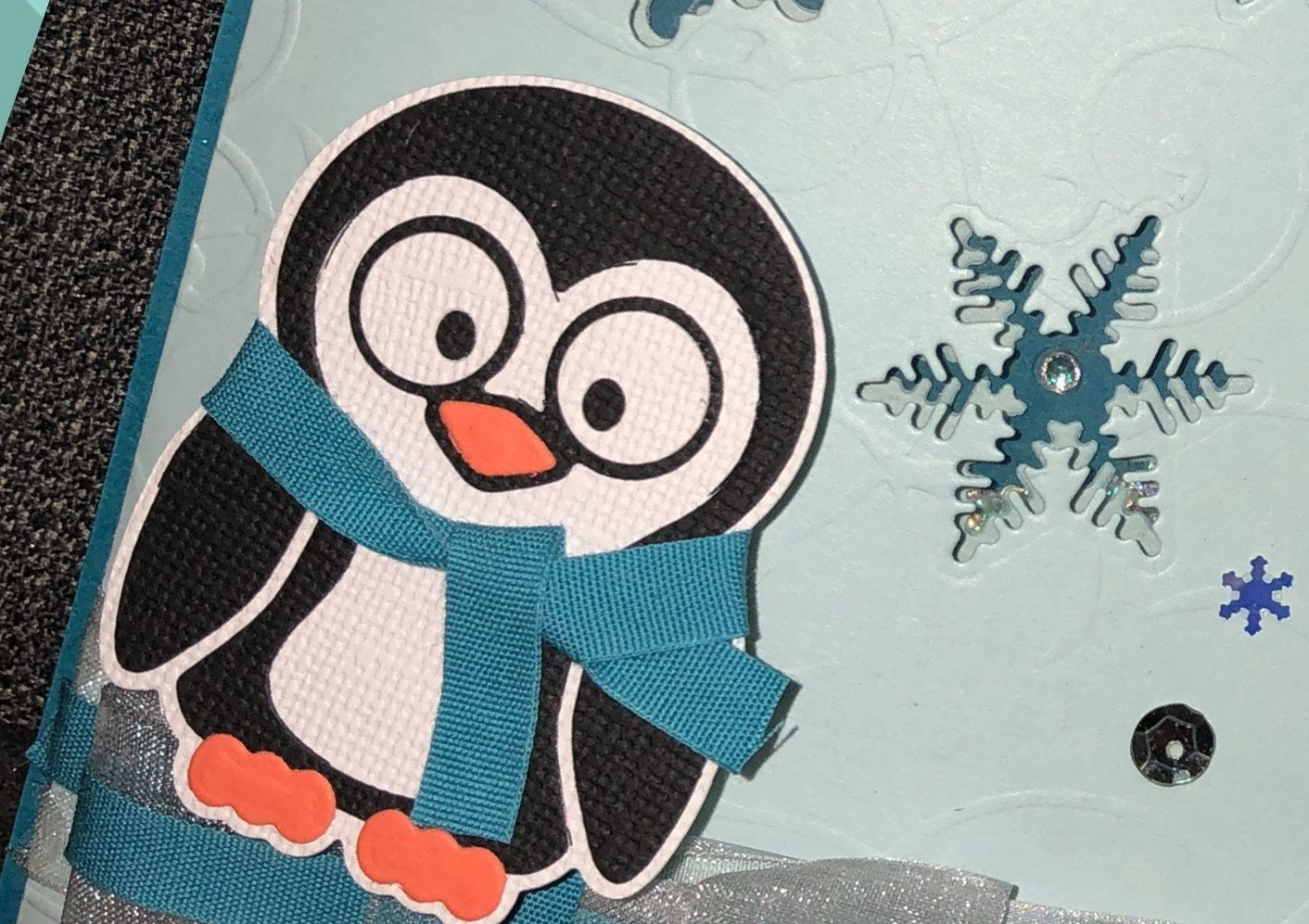 All the cardstock used is from Stampin Up and the colours are listed below. The Penguin die and the Border dies are from Karen Burniston. The snowflake dies re from my stash, a thrift store find, but any snowflakes or other shapes will do.