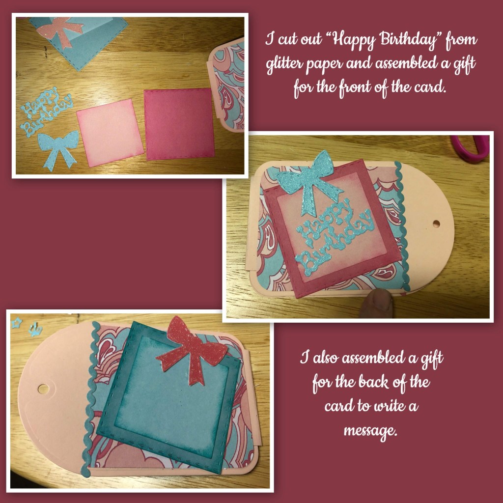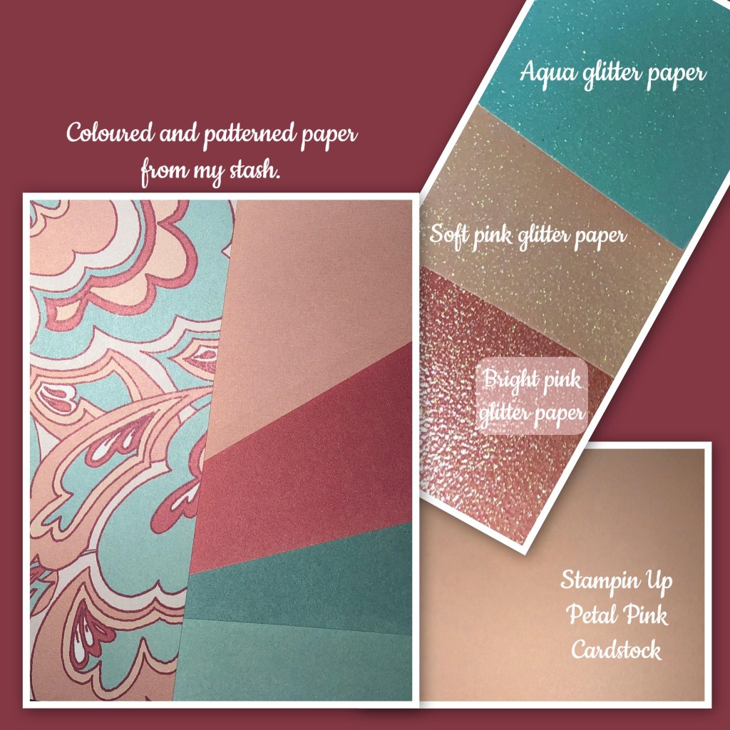 This is a card that I made for my friend and colleague Katherine. Katherine is one of my biggest fans and always shows great appreciation for the cards that I make, even when they are not for her 😂, I new this card had to be fun, and sparkly so I picked a pretty pattern that had some matching colours of paper, and also had matching glitter paper. These papers were given to me by a friend so I’m not sure where they are from ☹️ The cardstock that I used is Petal Pink from Stampin Up as it seemed to match up pretty well.