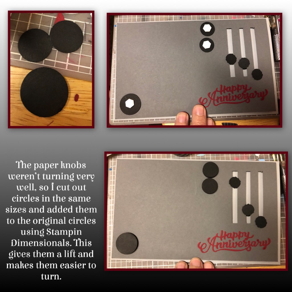 The reason I used washi tape in the step above is because it needs to be really thin. It does have to slip in behind when the mechanism is turned all the way. Otherwise there is a gap that shows in the front