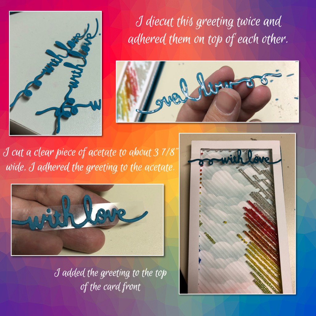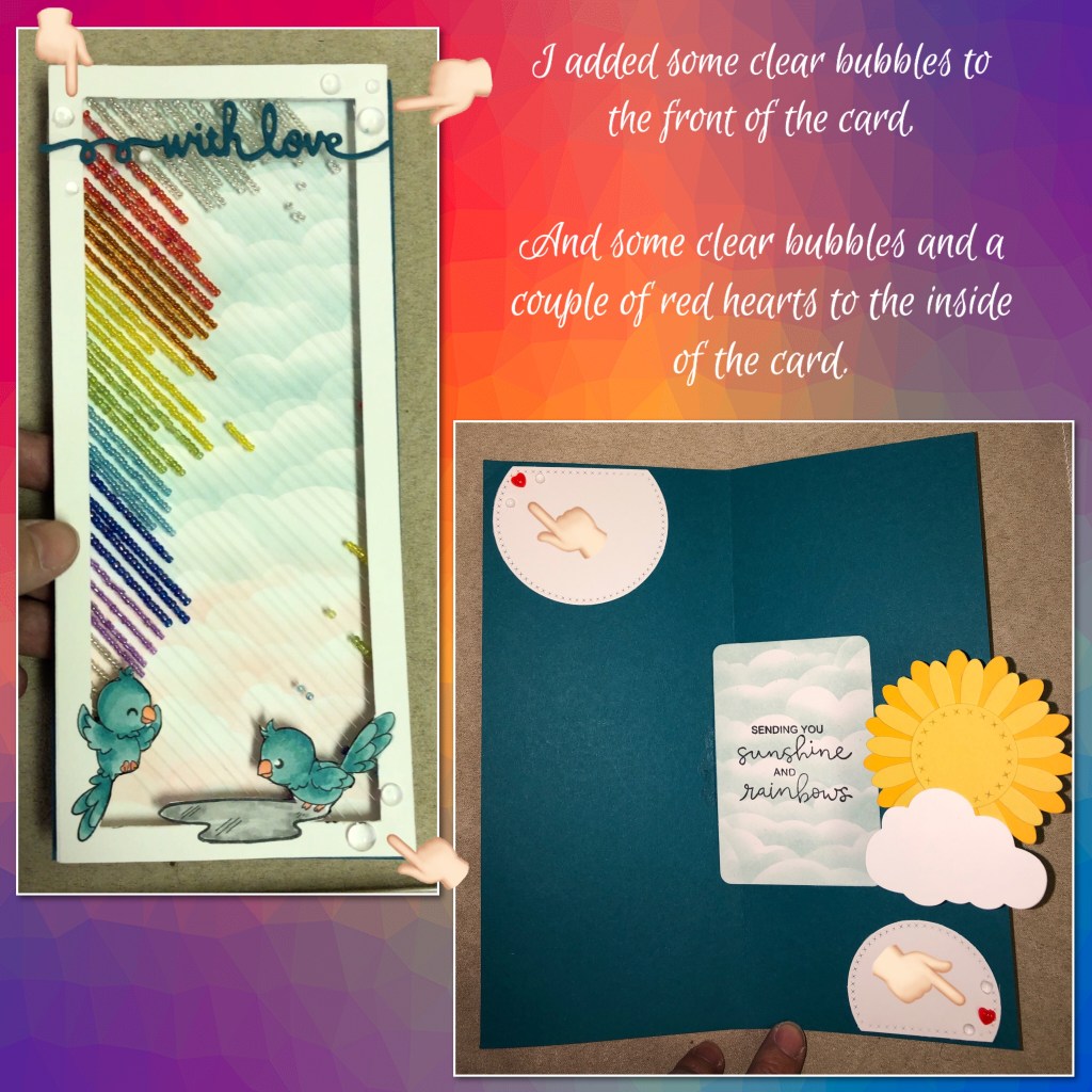 Hey all, this is week 2 of me hosting the Crazy4Challenges challenge blog. This is so much fun. You know what they say “April showers bring May flowers” so this weeks challenge is to have rain 🌧 or a rainbow 🌈 on your card. I decided to have a bit of both. Last fall I made a Magical Rain card I really liked how it turned out so I thought that I would make a different version. I thought it would be really neat as a rainbow, I also changed the size of the card and the angles and this is what I came up with.