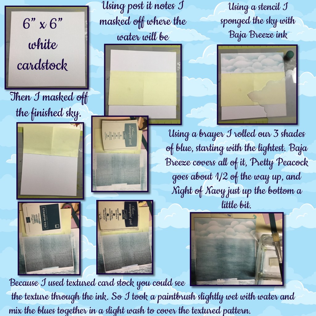 I decided to create a back ground using a cloud stencil and a brayer. I originally learned how to do brayer backgrounds when I was a Stampin Up demo, I was totally inspired by Michelle Zindorf, she does AMAZING brayered backgrounds. Mine is quite simple 👇🏻