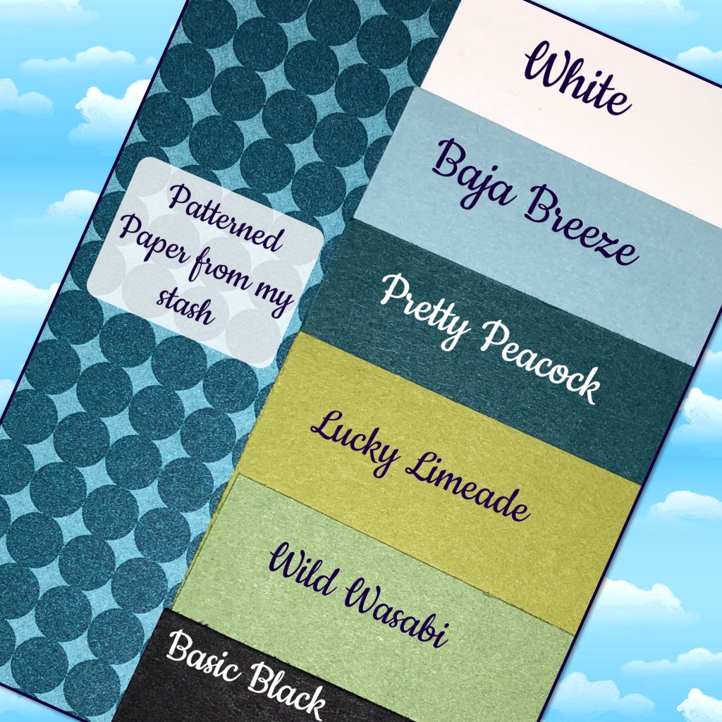 The cardstock, except the white, is from Stampin Up, the white textured cardstock and patterned paper are from my stash.