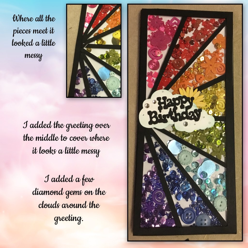*Wow am I happy the weekend is here, and for us here in Canada πŸ‡¨πŸ‡¦ it is a long weekend πŸ˜€. I was able to take the time this week to play along with this weeks Crazy4Challenges challenge. Apparently September is β€œShake Month”, technically this relates to milkshakes however for the challenge this week we were to create a shaker card. Now I’ve made a lot of shaker cards so I decided to do something I haven’t tried before and I made a rainbow shaker card I was inspired by a CARD I made a few months ago . I do not have a dieset that cuts out all the windows I did have to do this myself so check out my details below to see how I pulled this off