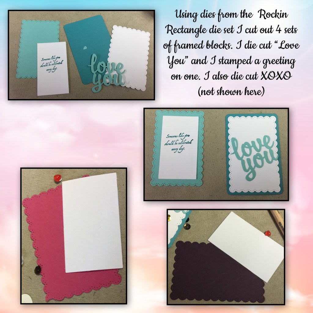 Now to decorate the inside, The rectangles are from the Rockin Rectangle die set. The words are from Karen Burnistons Word Set 9 Love