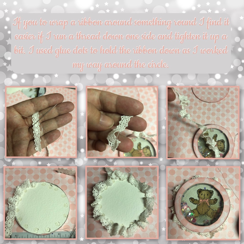 A little trick to help attach ribbon around a round element.