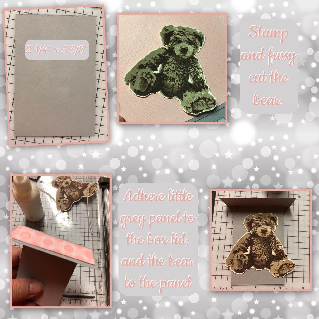 So I did cheat a bit. I had this bear in my stash, I stamped it a while back but didn’t use it. I thought it would be perfect for this card. The bear is originally a Stamping Up set which I believe is retired.
