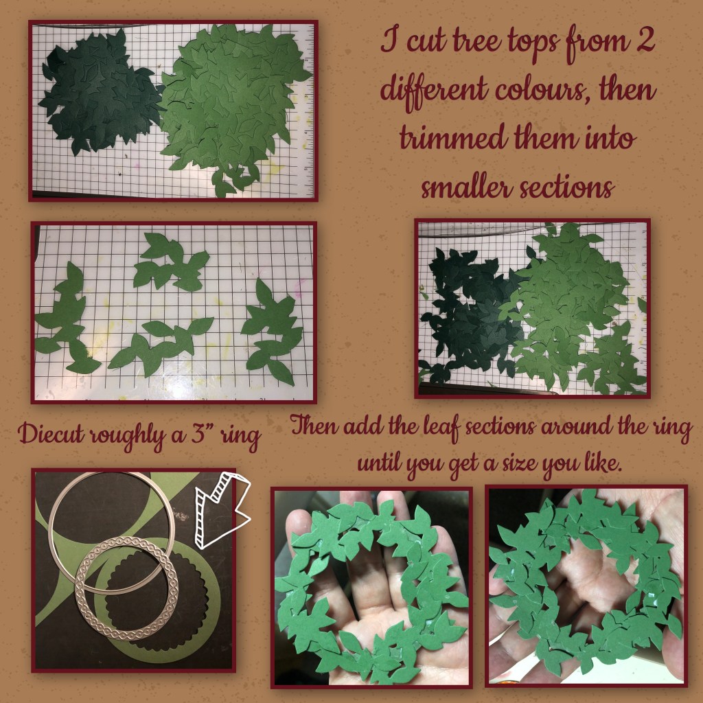 I used Karen Burnistons Tree Pop up die set, I used the tree top leaf section to make the wreath.