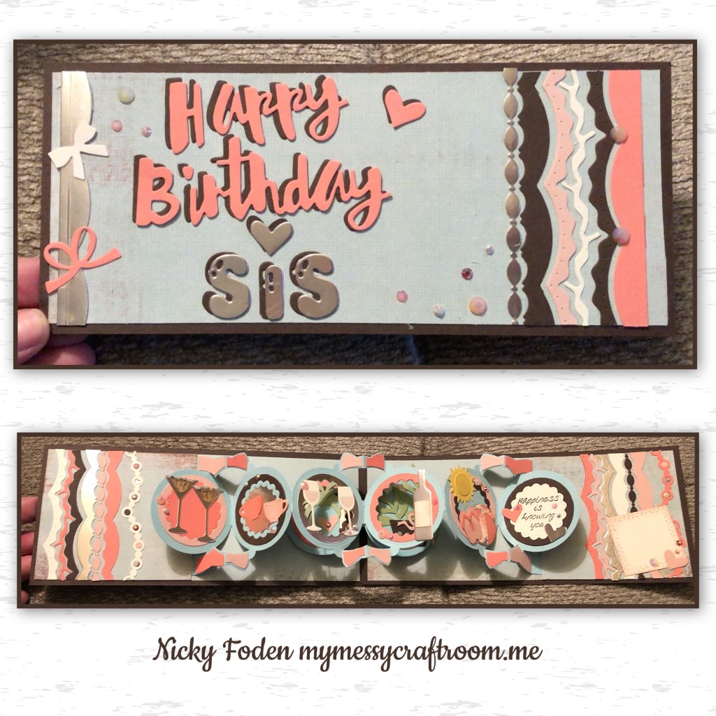 This is the card I made for my sister this past November. I really wanted to make her something special, as we don’t get to see each other very often. So I thought I would make her a card showing some of the things we’ve done together the last few times we’ve been together. The card includes Salted Caramel Martinis, Blueberry tea, Wine, (are you seeing a theme here 🍸☕️🥂, hanging at the beach and ….. she loves plants 🌱 and gives me cuttings that I generally kill ☠️. I also made sure to use a pretty colour combo and some bling.