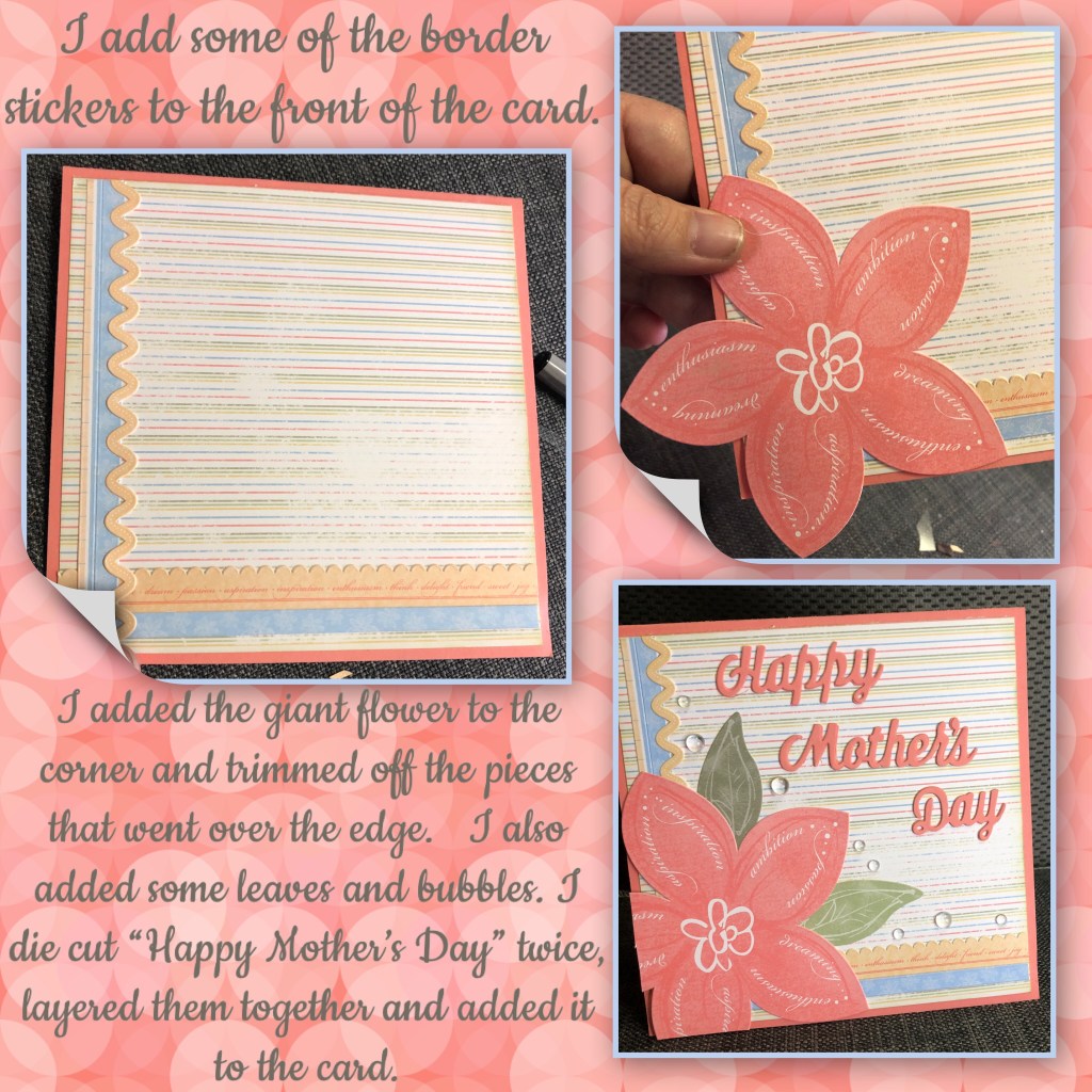 I used stickers but die cut, felt, or stamped flowers will work as well.