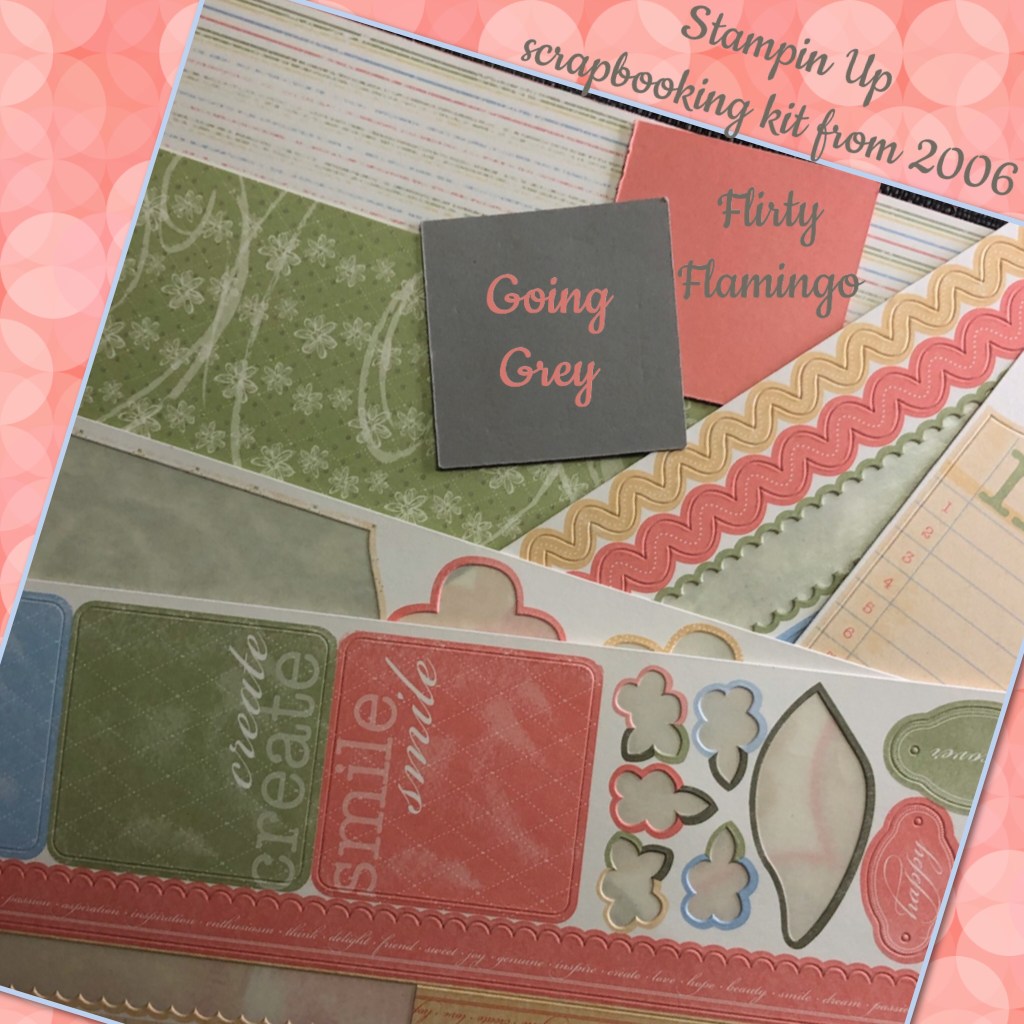 I wanted the flowers to be different than what I typically do. I typically die cut the flowers but I wanted a different look for this card so I went stash diving and found a Stampin Up scrapbooking kit that I’ve had since 2006 😜, the supplies and colours are are listed below.
