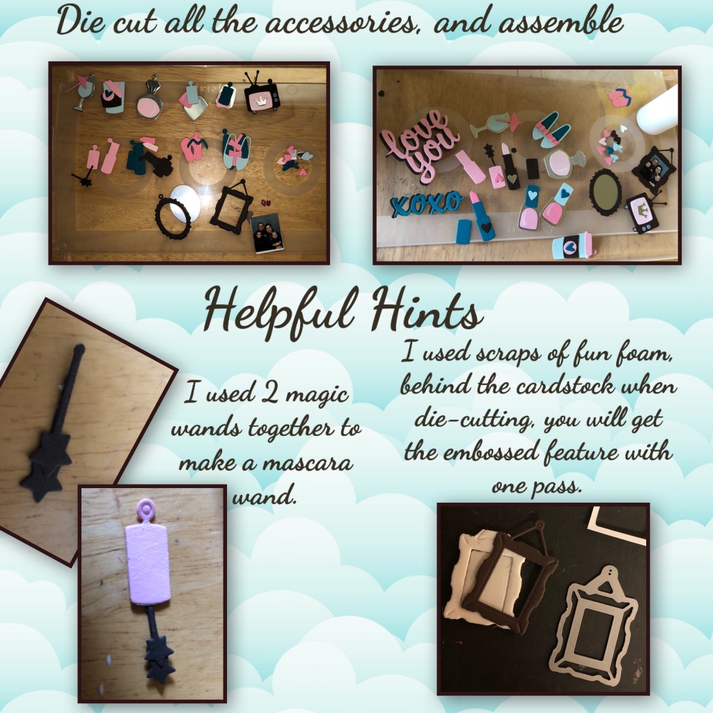 I used a variety of dies to decorate the inside of the card. I used the Beach Charms, Memory Charms, Dolled Up Charms, Coffee charms, Happy Hour Charms, Princess and Mermaid Charms, I also used the Word set 9- Love