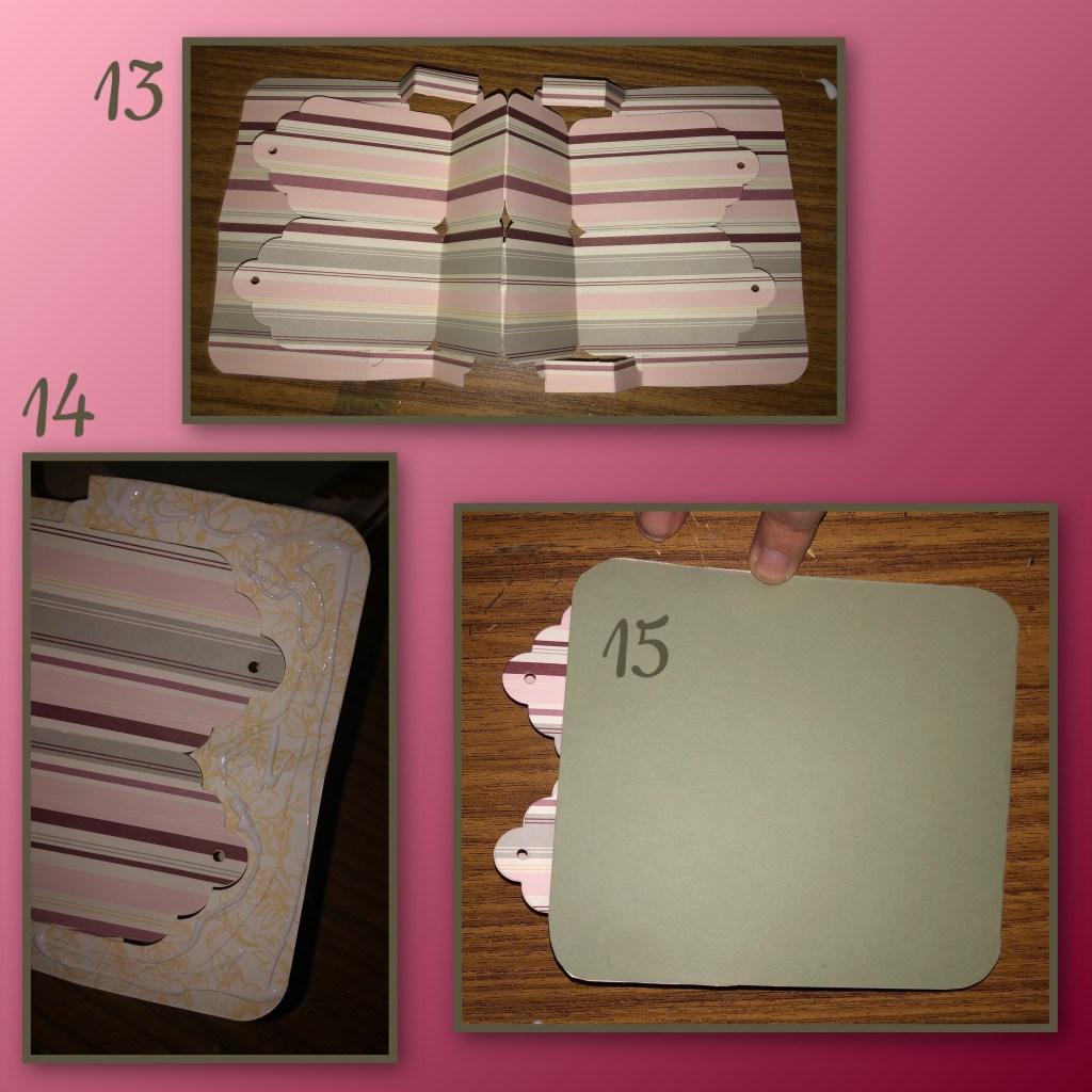 18- Cut out two squares from the matching striped paper, slightly smaller than the card base (if I remember correctly it should be 4 3/4â x 5 1/4.â) Trim the corners like you did the cardbase. Adhere one to the front and one to the back of the card bace)