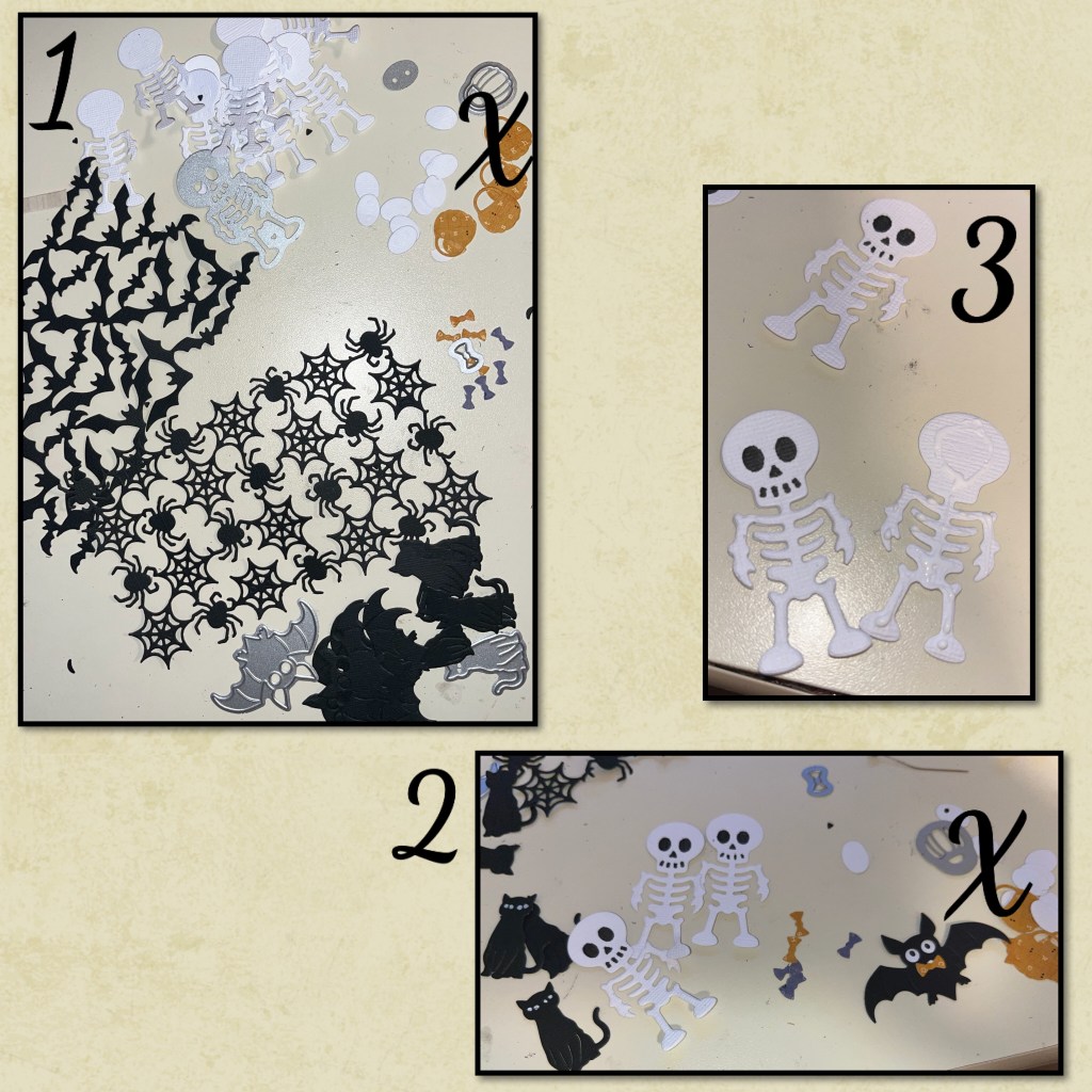 1- I cut out the skeletons, bats, and cats from the NEW Skeleton and Bat set, as well as the Slim Pattern Plate Bats and Slim Pattern plate bats,