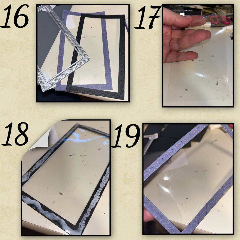 19- adhere the purple frame over the acetate, covering the glue that is visible