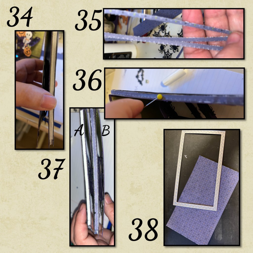 36- I used liquid glue to add the strips around the card. The little ball on the pin helped to smooth it out.
