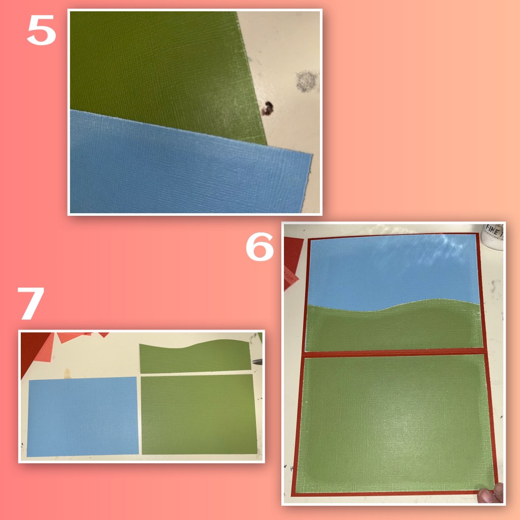 5- the blue and green cardstock are both from Core Color, both were cut to 6 3/4”x 4 3/4”