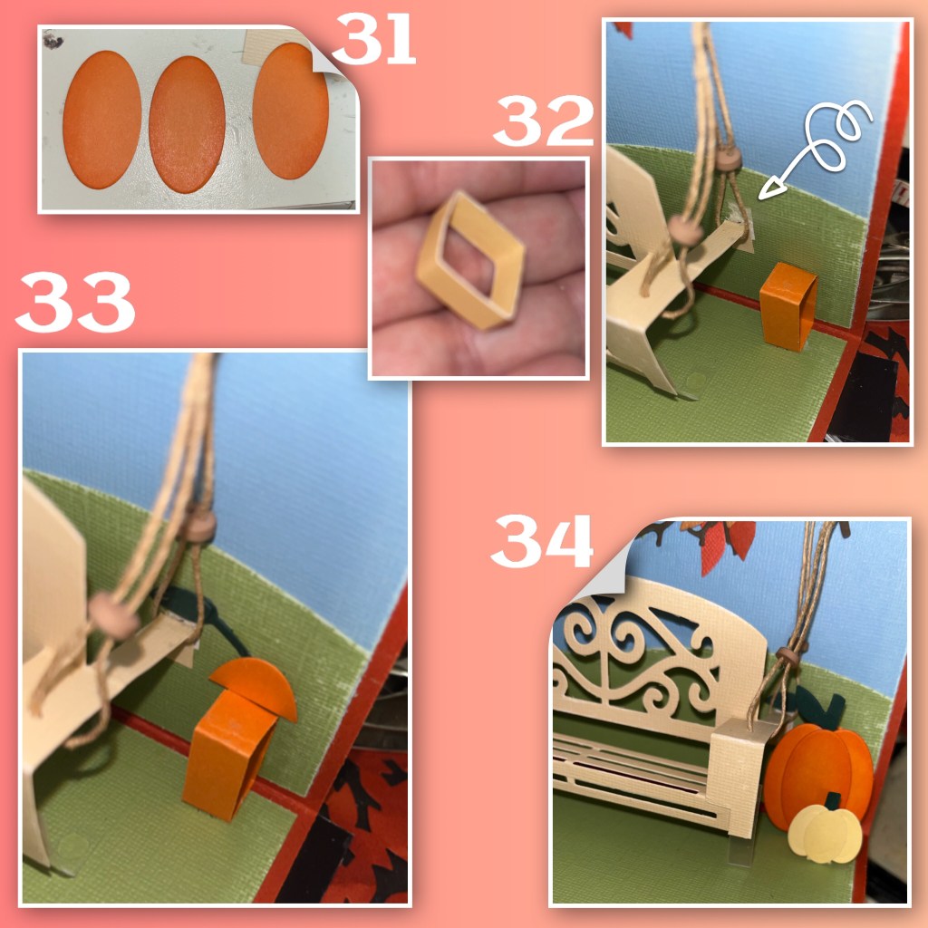 34- add the pumpkins with the little boxes behind to pop them out a bit.