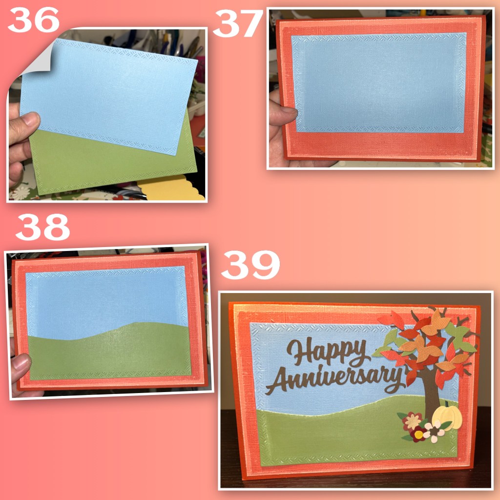 39- I added β€œHappy Anniversary” a tree, some flowers and a pumpkin to the front to finish it off.