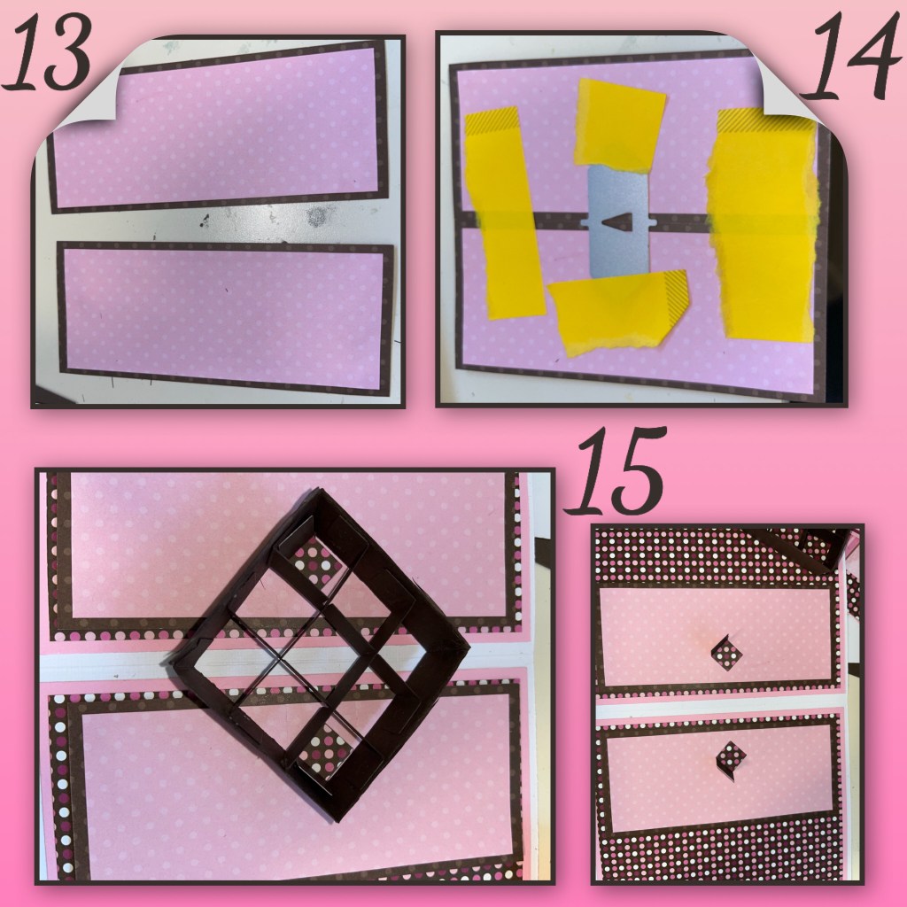 14- I used sticky notes to hold the panels together and to hold down the die for the pop up mechanism.
