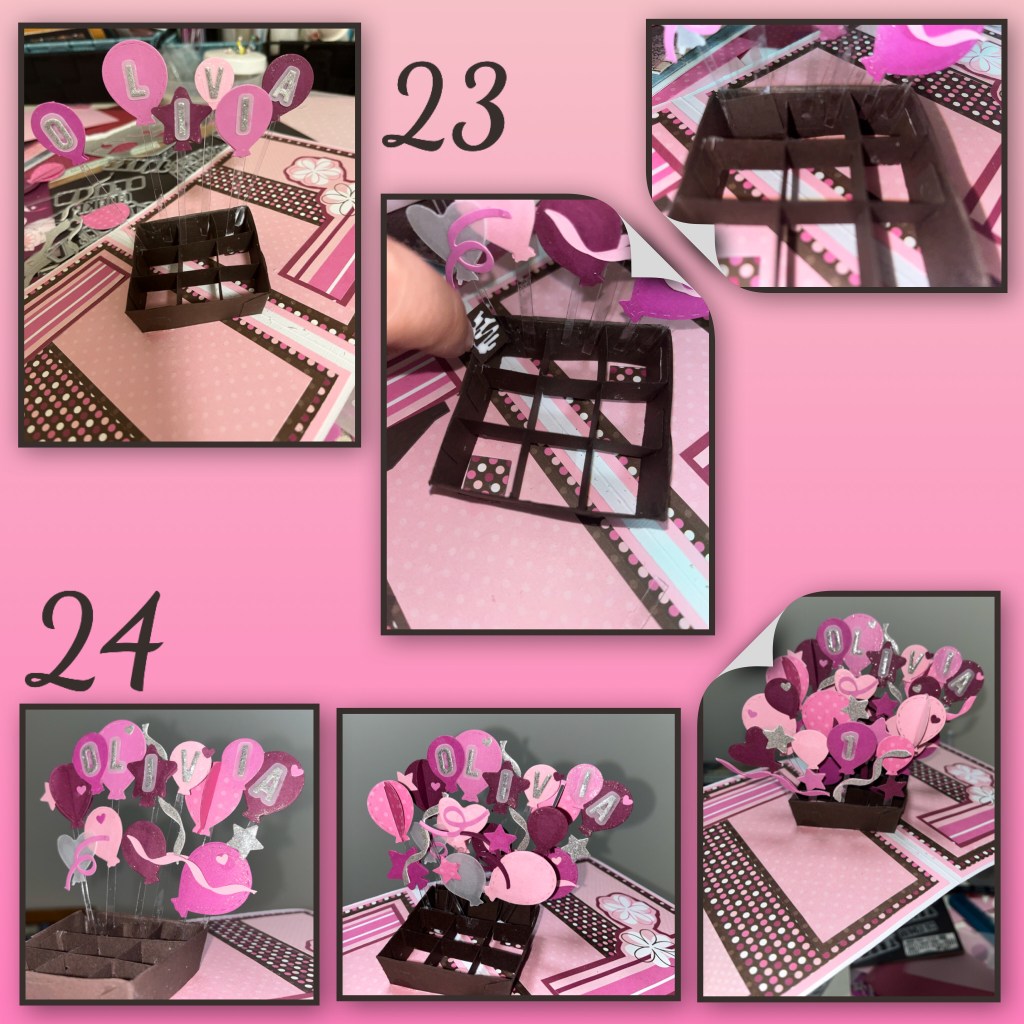 24- I worked my way to the front. I fold tested often to make sure the balloons stayed within the limits of the card.