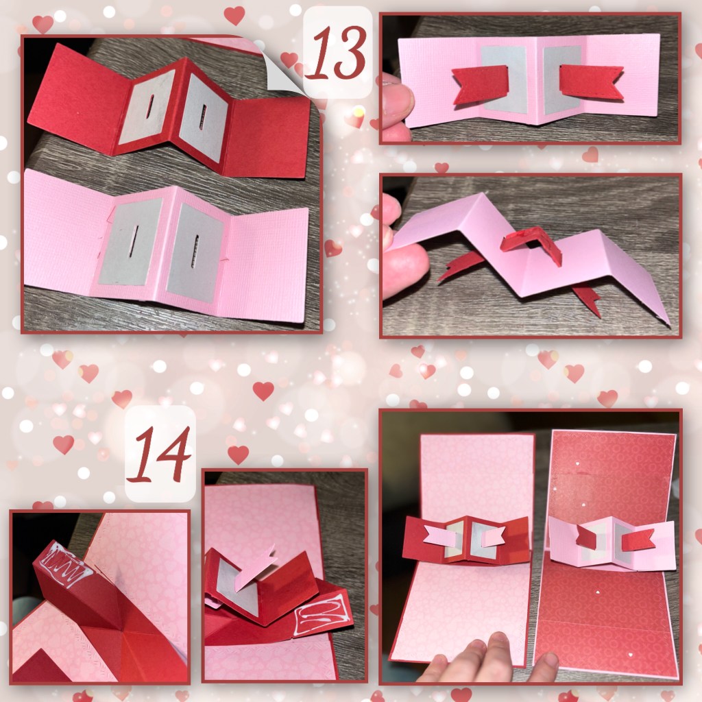 6- using the medium cross hatch die I cut out a matching (not so busy pattern) paper for the front and added “Happy Valentines Day”
