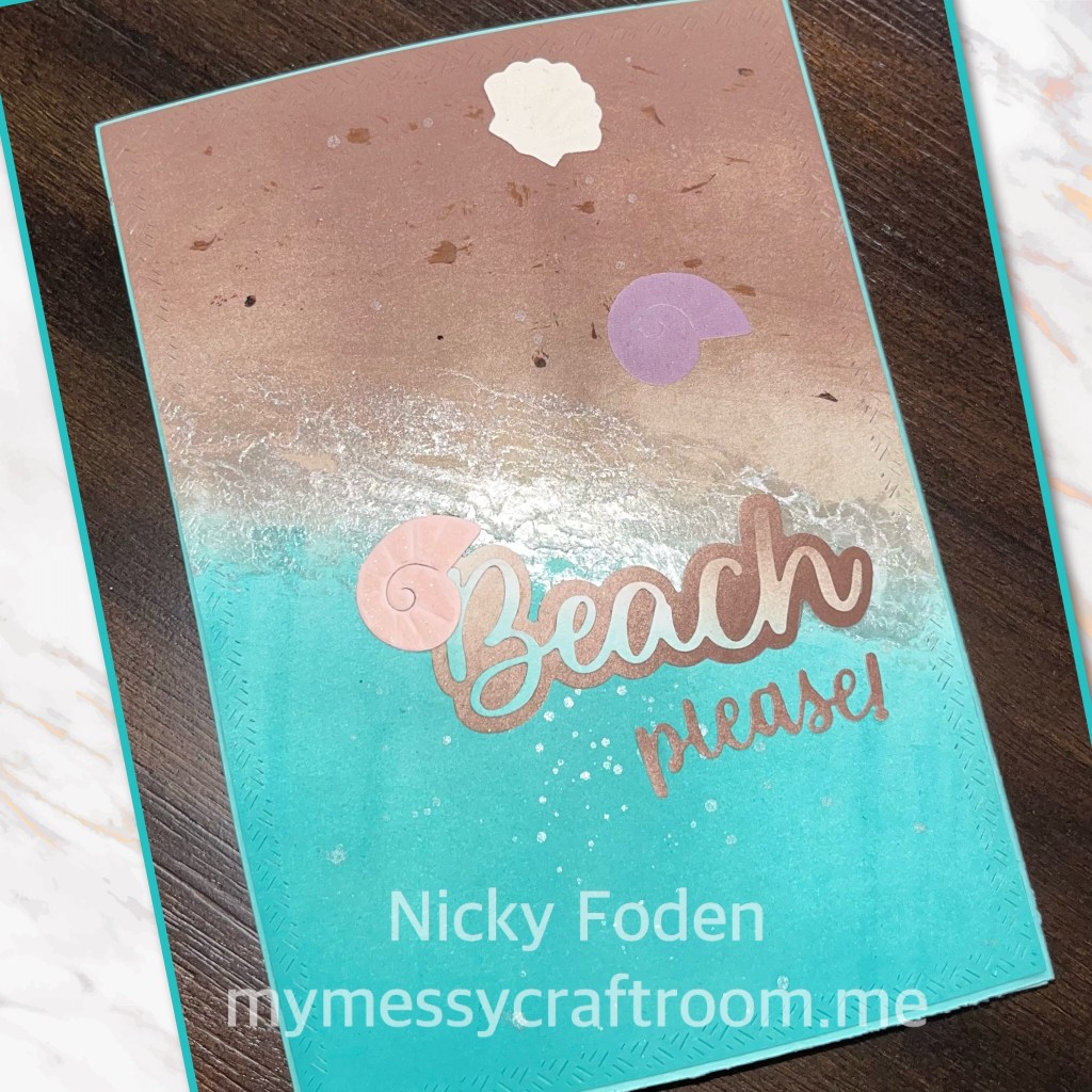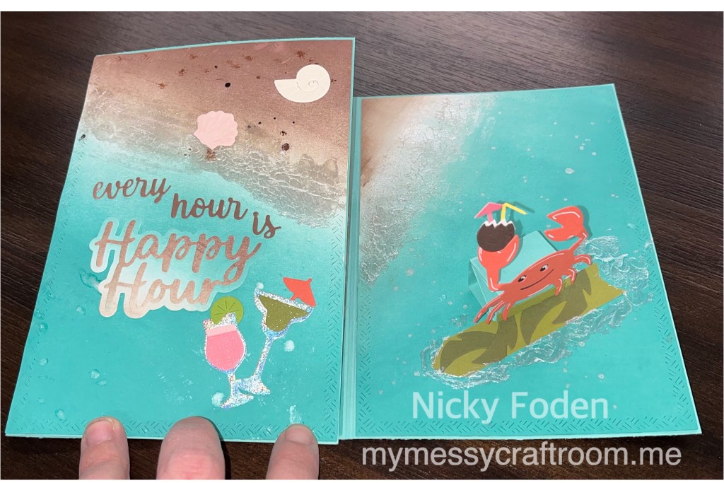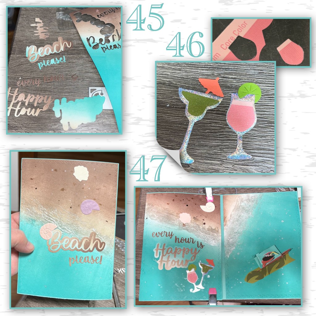 45- I die cut “Beach please every hour is Happy Hour” from the extra inked up cardstock.