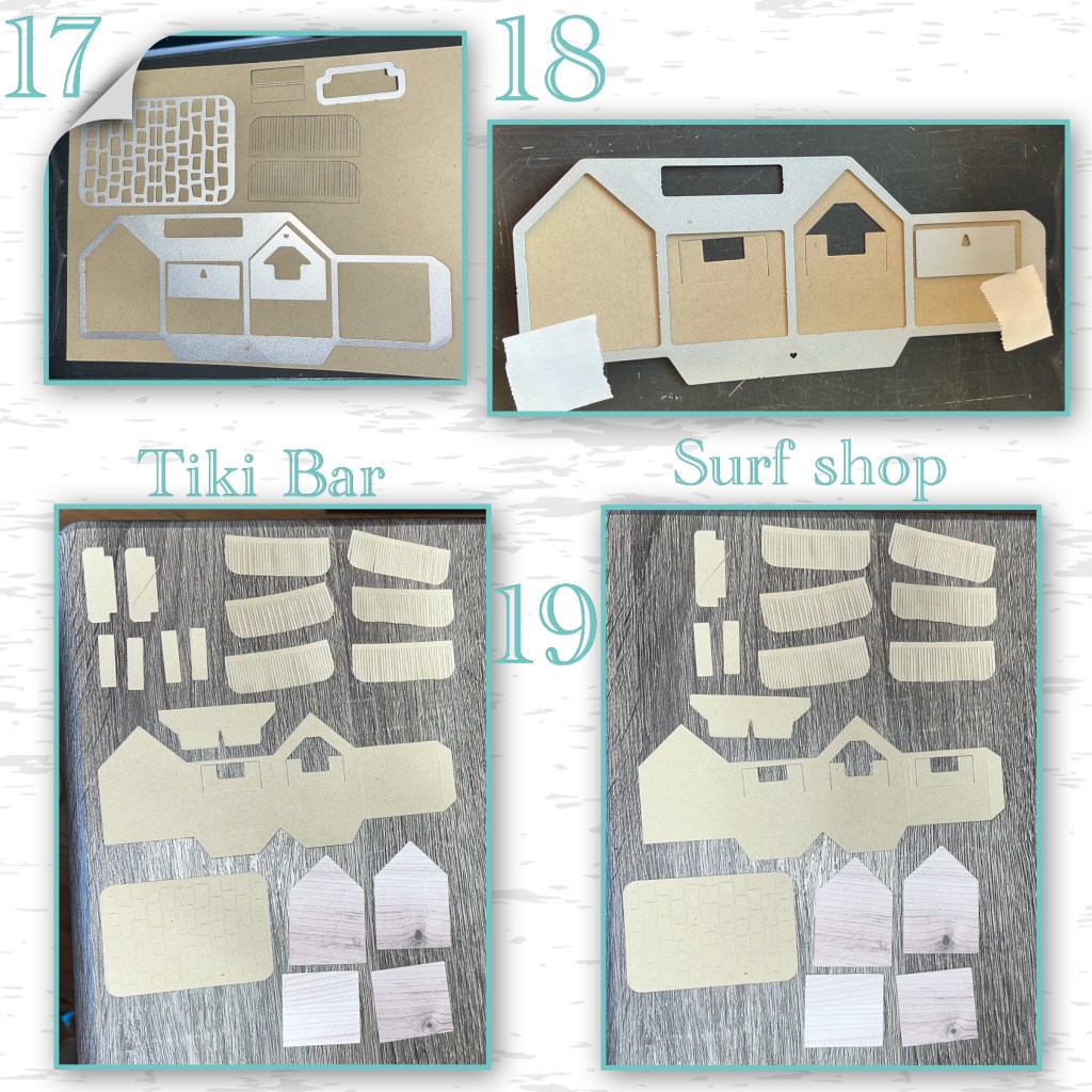 19- I needed slightly different pieces for the bar and the shack, also I used the Dog House Tiny House add ons to cut out the wood grain paper.